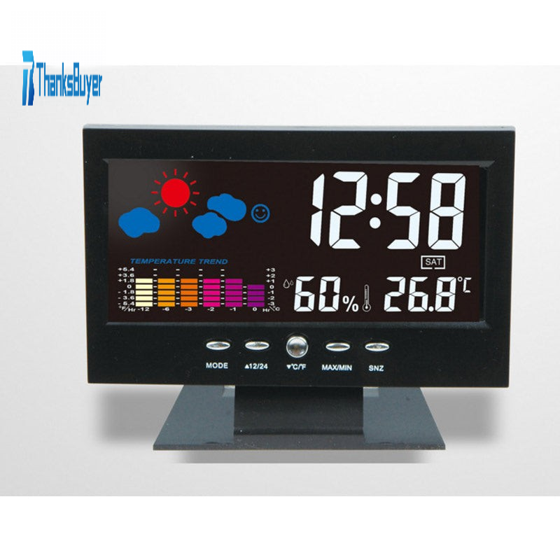 - With alarm, snooze function, weather, comfort level, temperature trend indication, really practical.