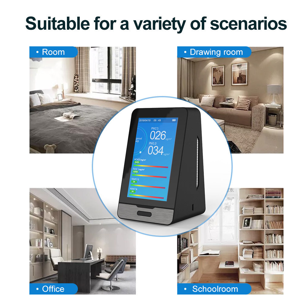 - This detector is suitable for indoor and outdoor air quality, muti-envornmental air quality monitoring for furniture, decorations, cars, and so on.