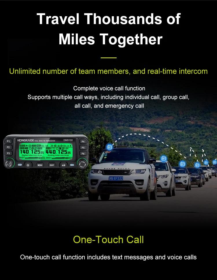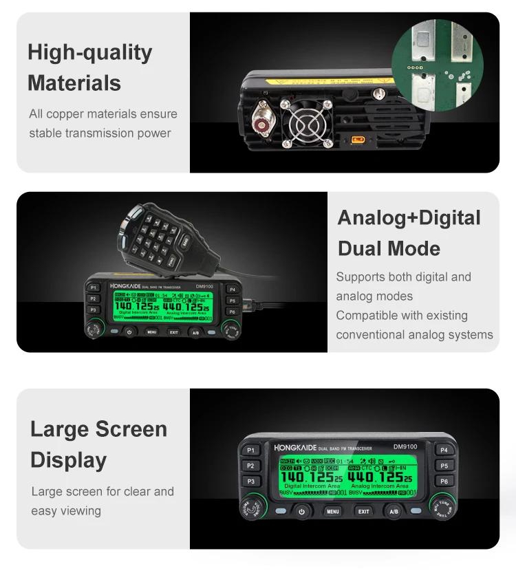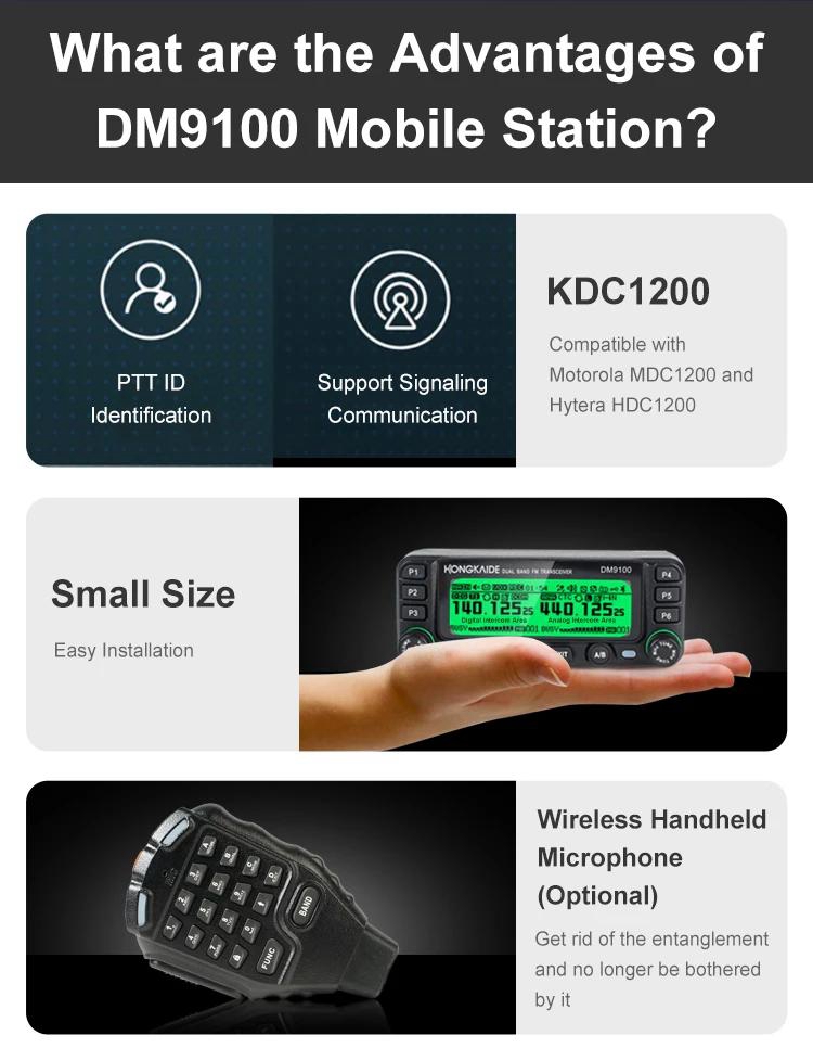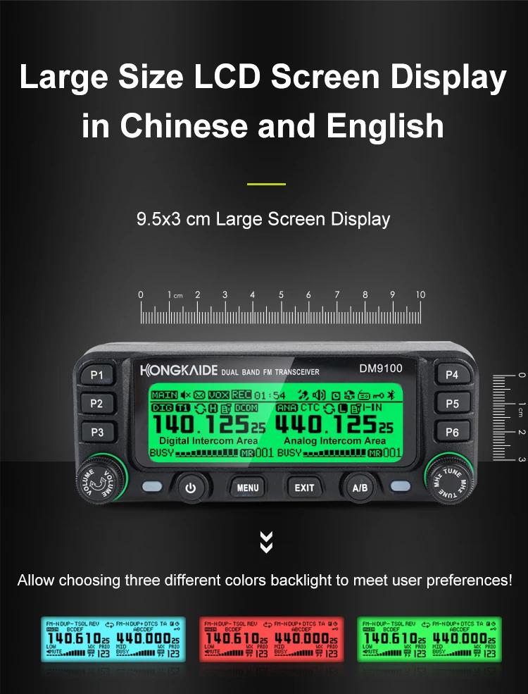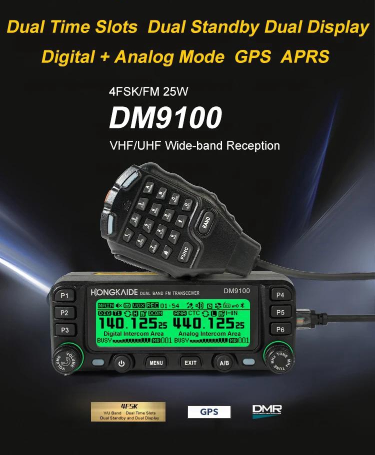 DM9100 Vehicle Walkie Talkie 136-174MHz/400-470MHz DMR UHF/VHF Dual Band 25W FM Transceiver Bluetooth GPS