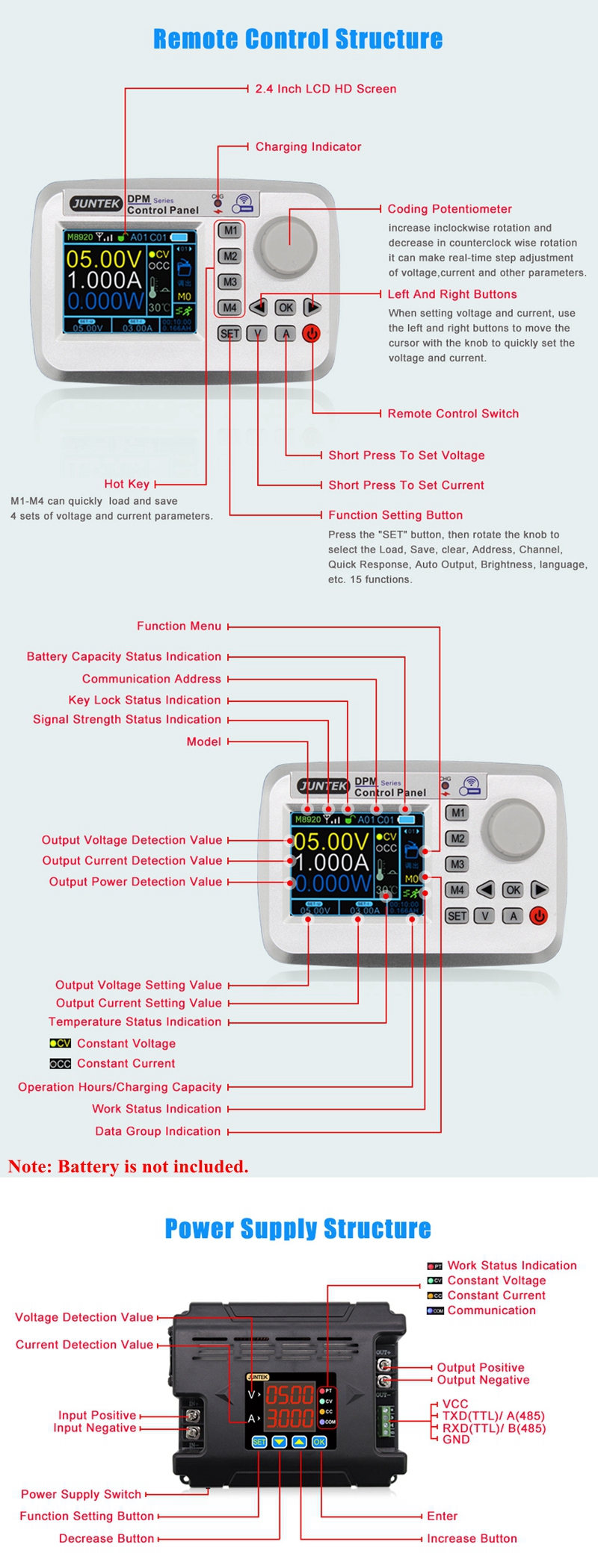 - Input DC Voltage 20-110V: Used together with AC-DC switching power supply for battery (battery is not included), it can be used as as high-precision digital adjustable DC power supply or a charger.