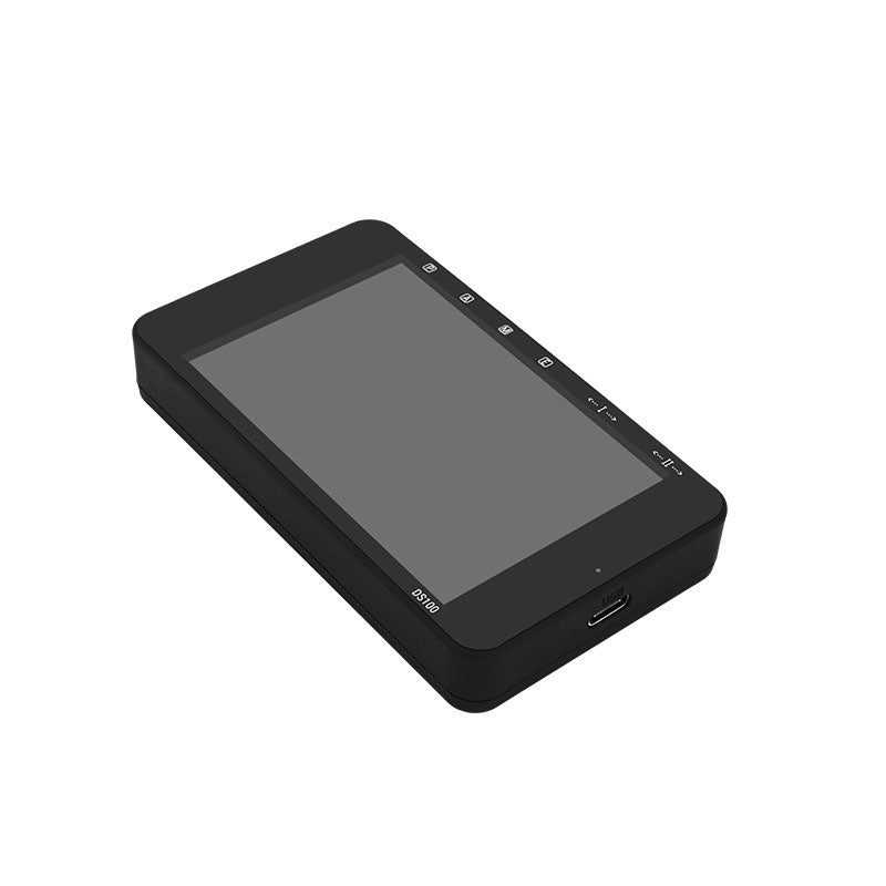 - Small and exquisite. Simple design, smooth feel. About 1/62 of the size of a benchtop oscilloscope. Complete all controls through 4 buttons + 2 scroll wheels. 3.5-inch IPS high-resolution screen has delicate display and no dead angles to watch the waveform. PC+ABS alloy material+high-elastic plush paint, smooth to the touch and exquisite appearance. Product size 100mm*58mm*15mm
