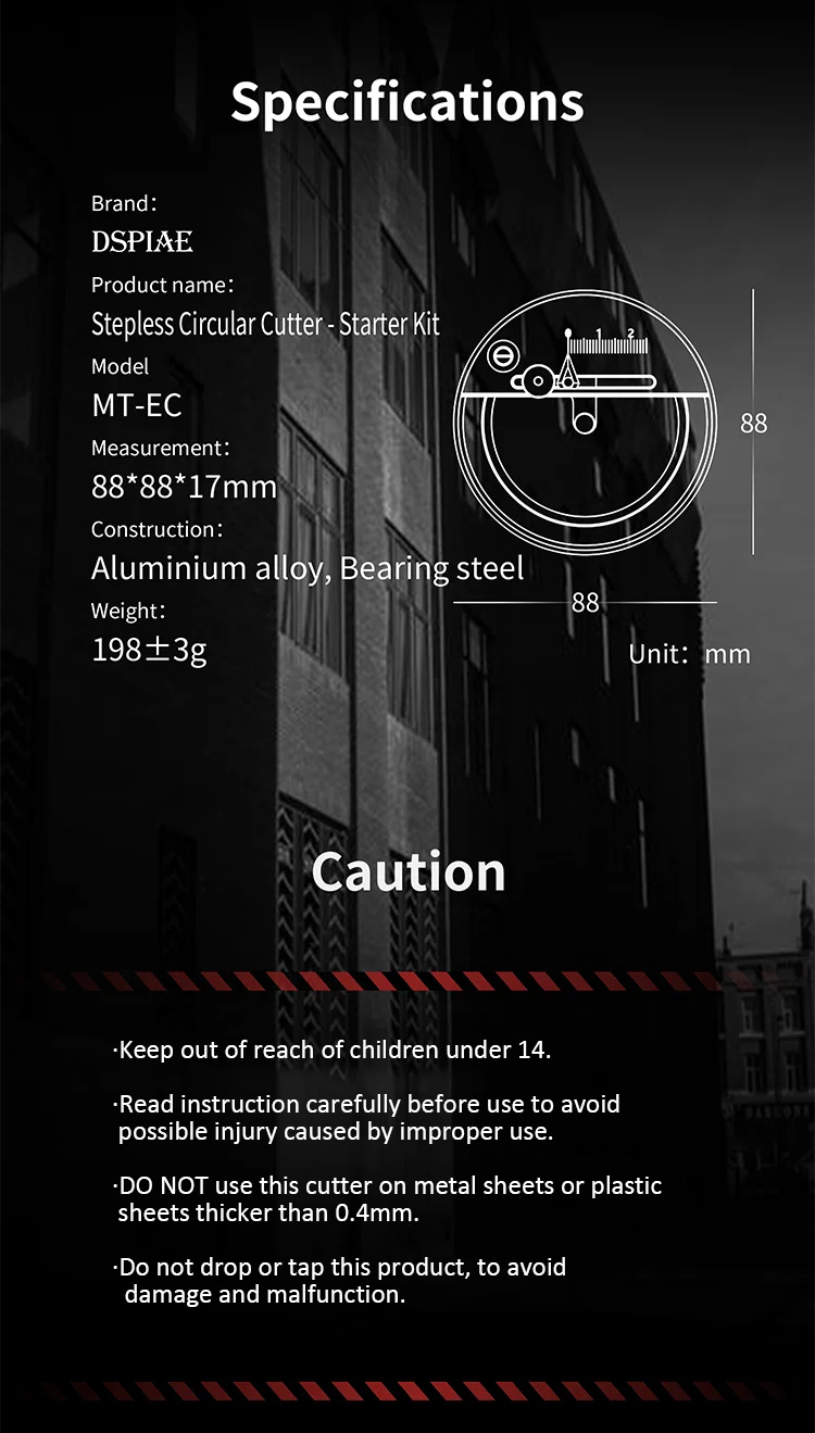 DSPIAE MT-EC Stepless Circular Cutter Starter Kit Model Making Tool for Masking Tape & Plastic Card
