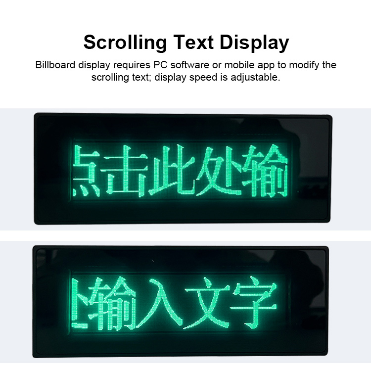 * Scrolling Text: It supports scrolling text display for billboard use, offering better cost-effectiveness than traditional billboards