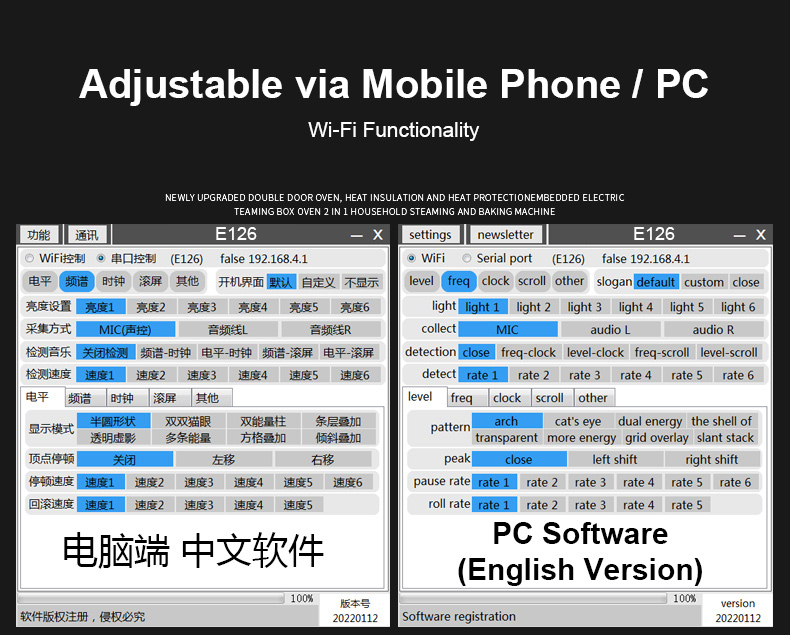 * Sound Control/Wired Control: Users can freely switch between sound control or wired control. It supports dual-channel data display