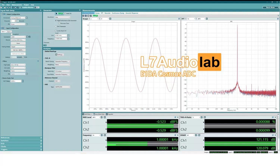 THD+N at 1kHz at -0.5dbFS SR48kHz BW 20-20kHz: 0.00007%