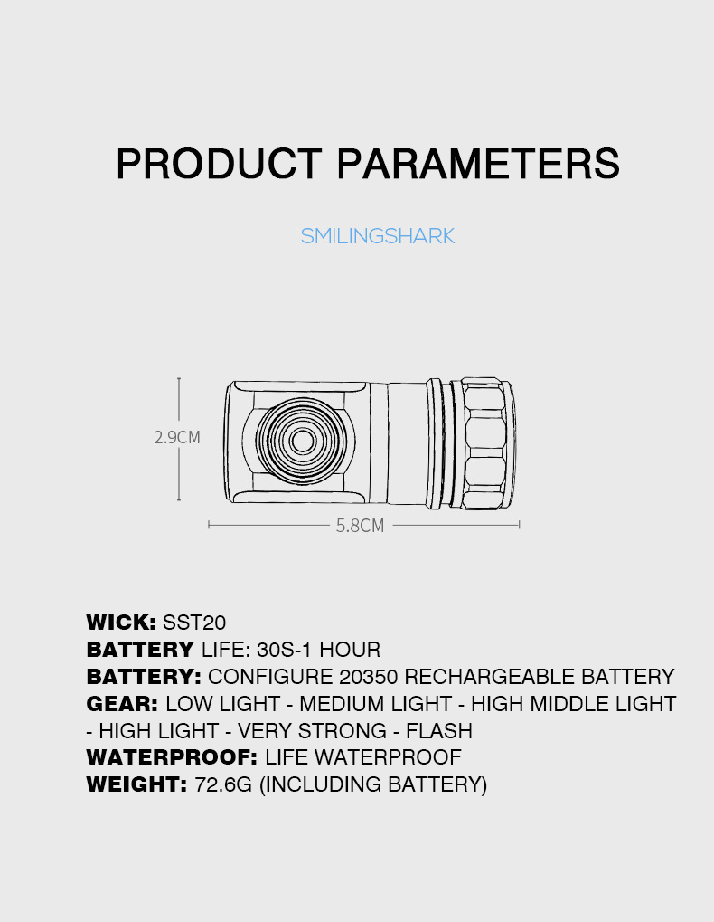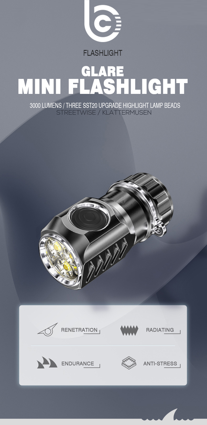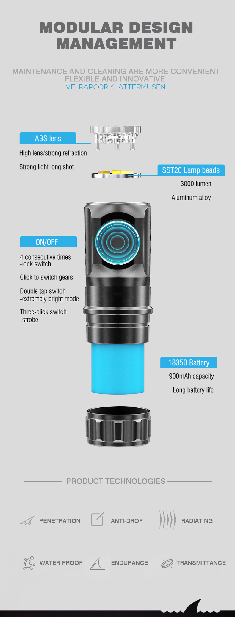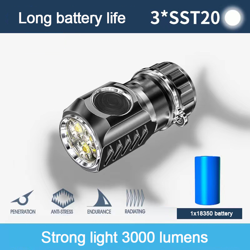 ES03 Black Portable Mini Super Bright 3000LM Flashlight 3xSST20 Lamp Beads with 900mAh 18350 Lithium Battery Kit