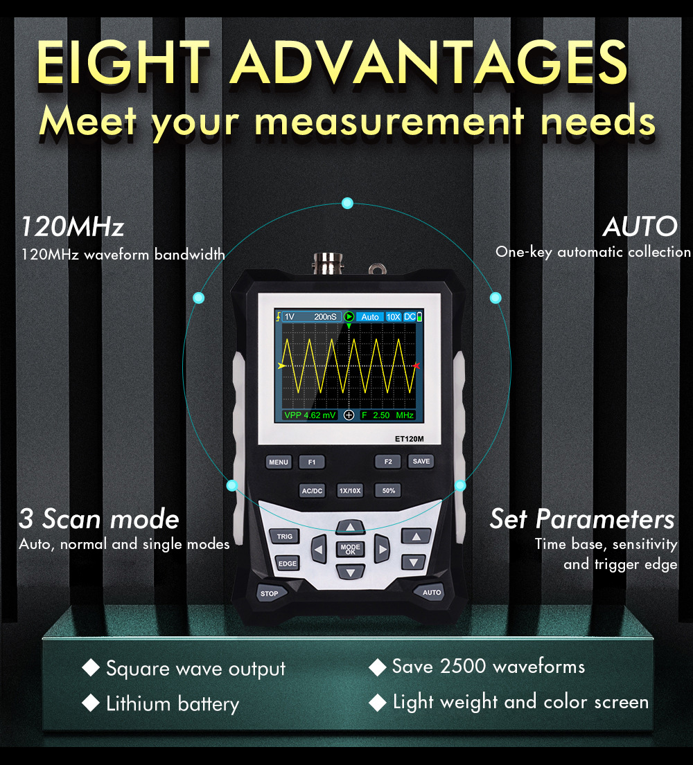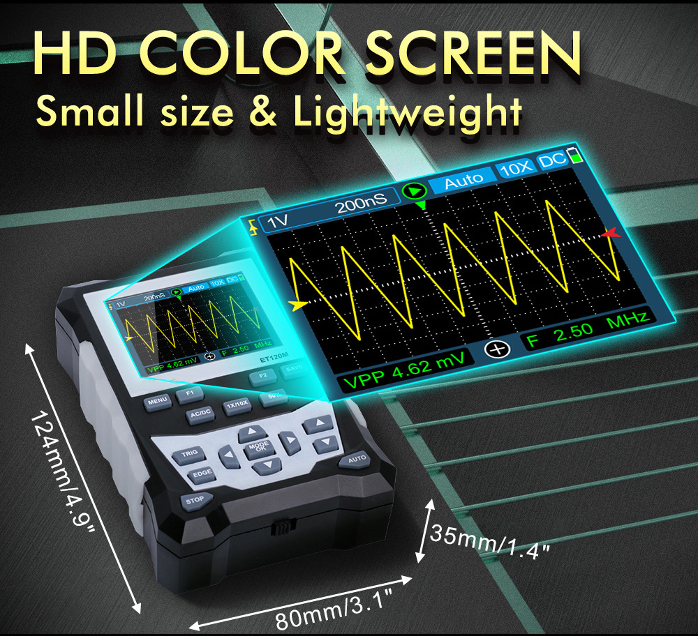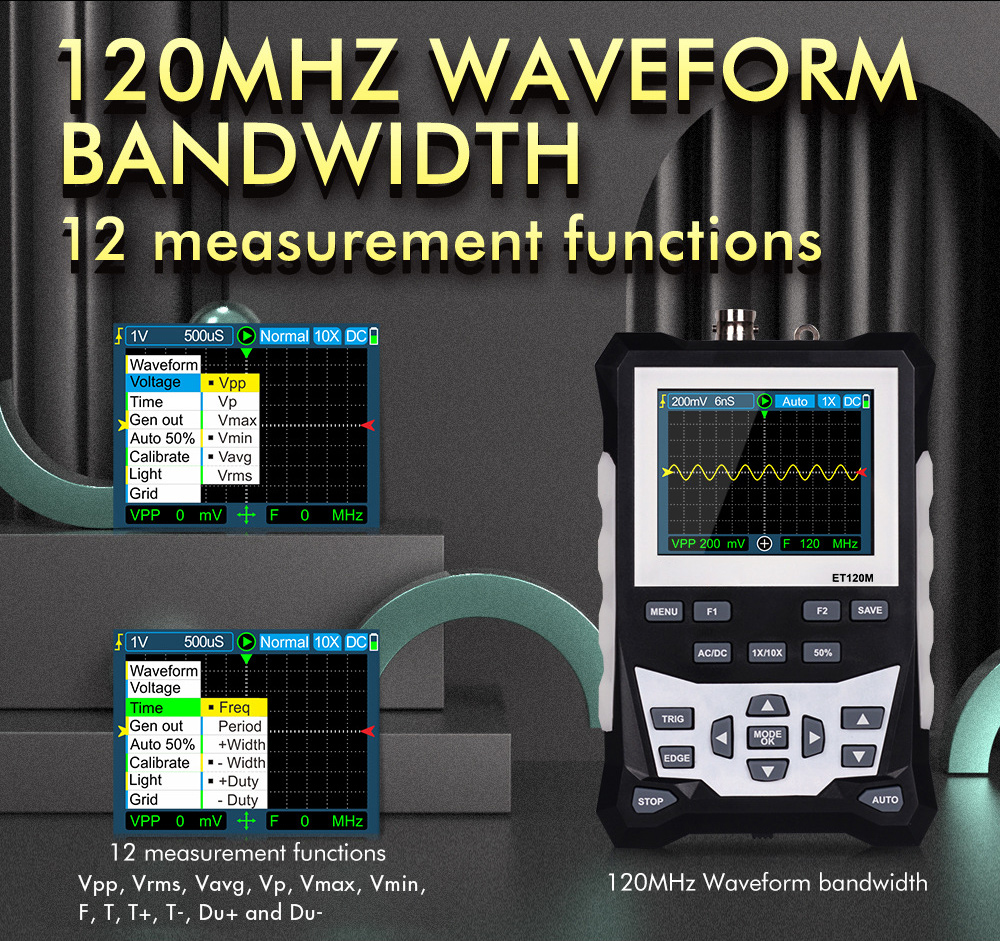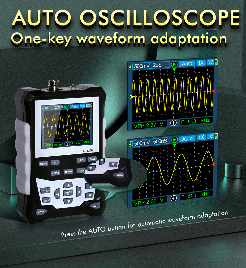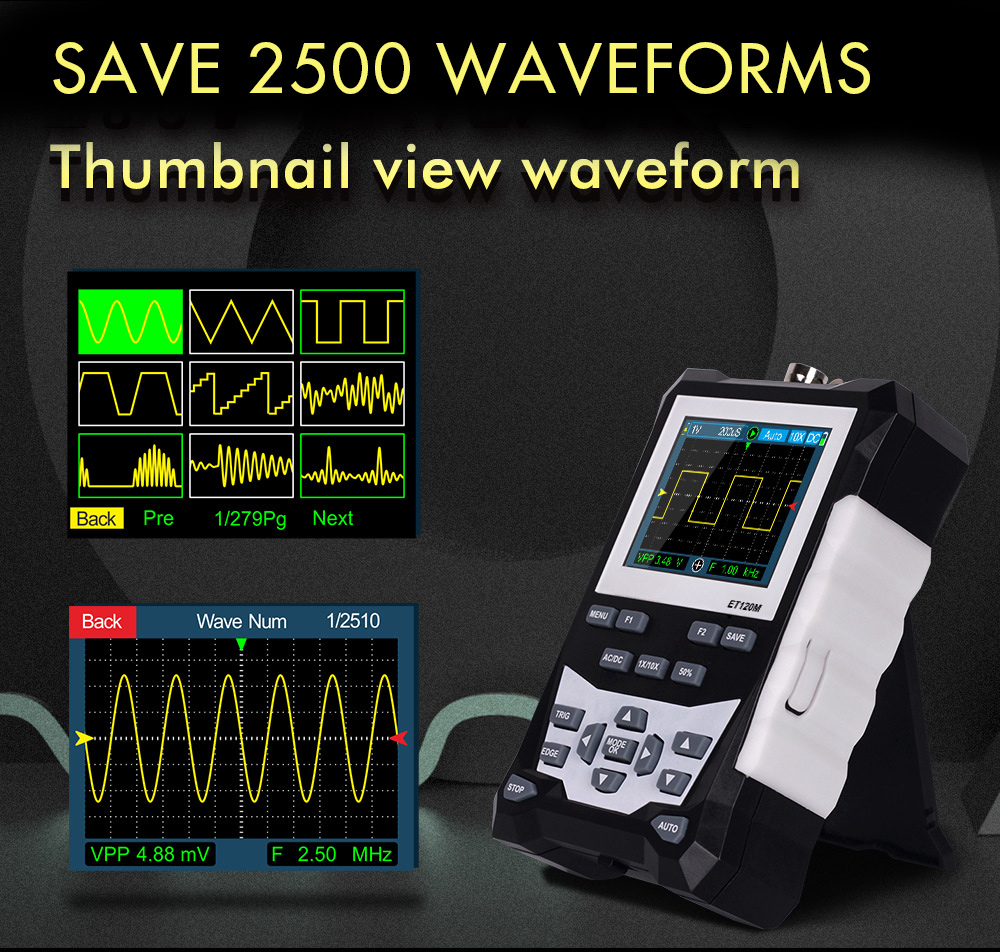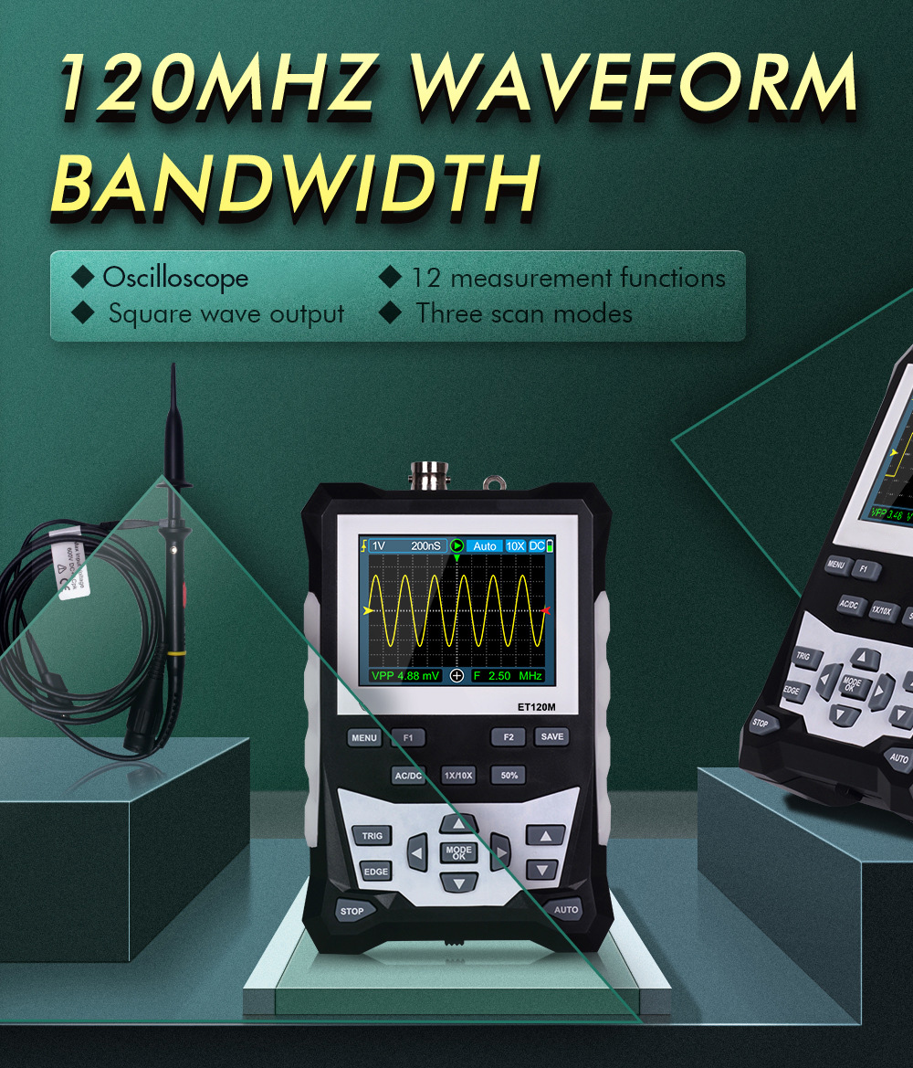 ET120M 120MHz 500Msps Analog Oscilloscope Digital Oscilloscope with 2.4 Inch Color LCD Display