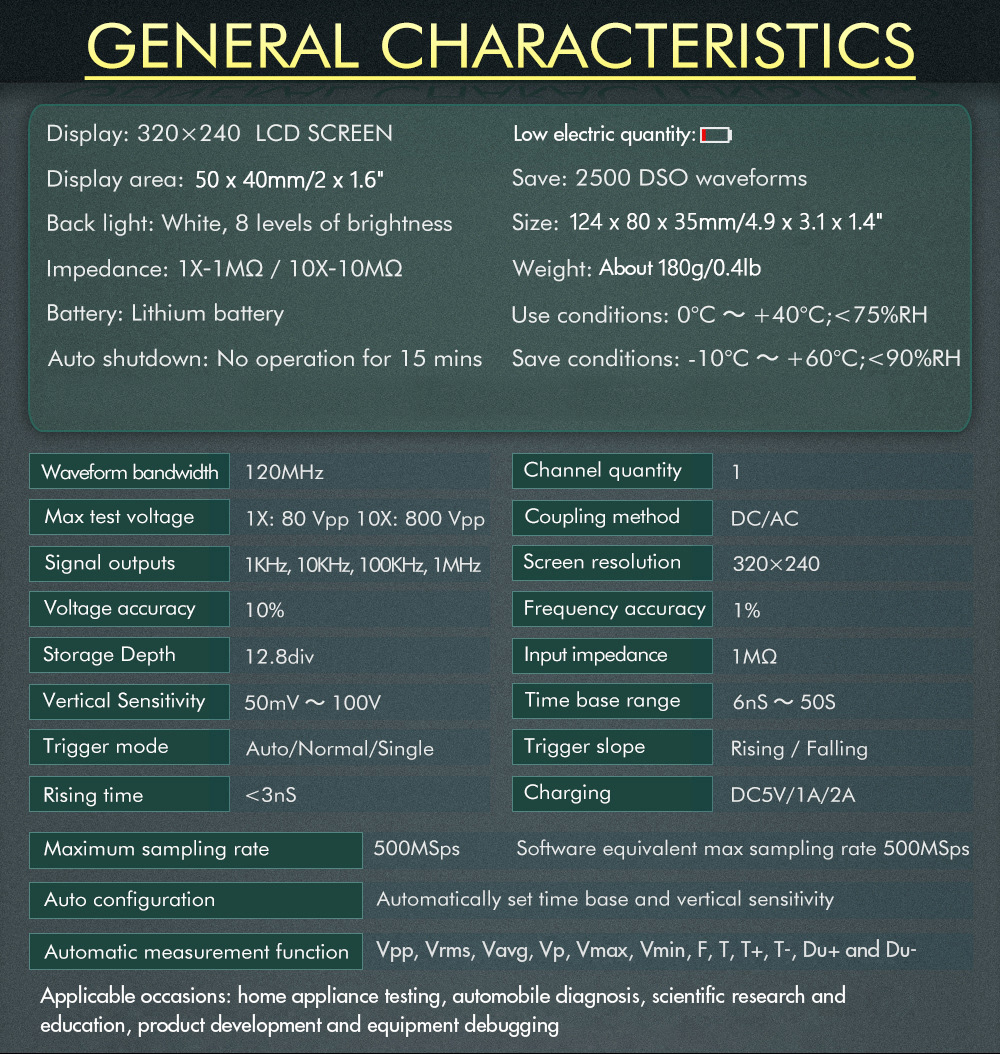 - 320*240 HD color LCD screen can display clear and accurate waveform