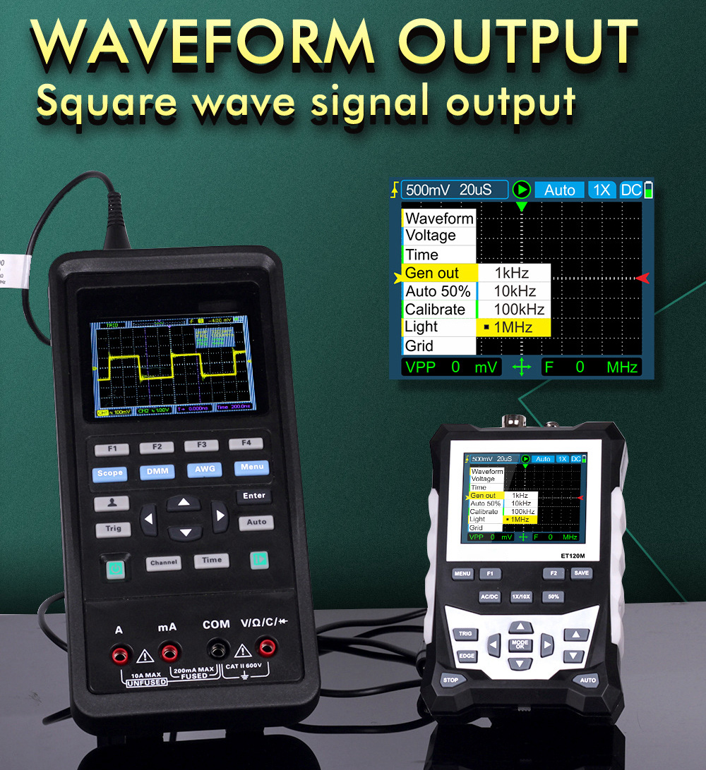 - Four levels of square wave signal output, including 1kHz, 10kHz, 100kHz and 1MHz