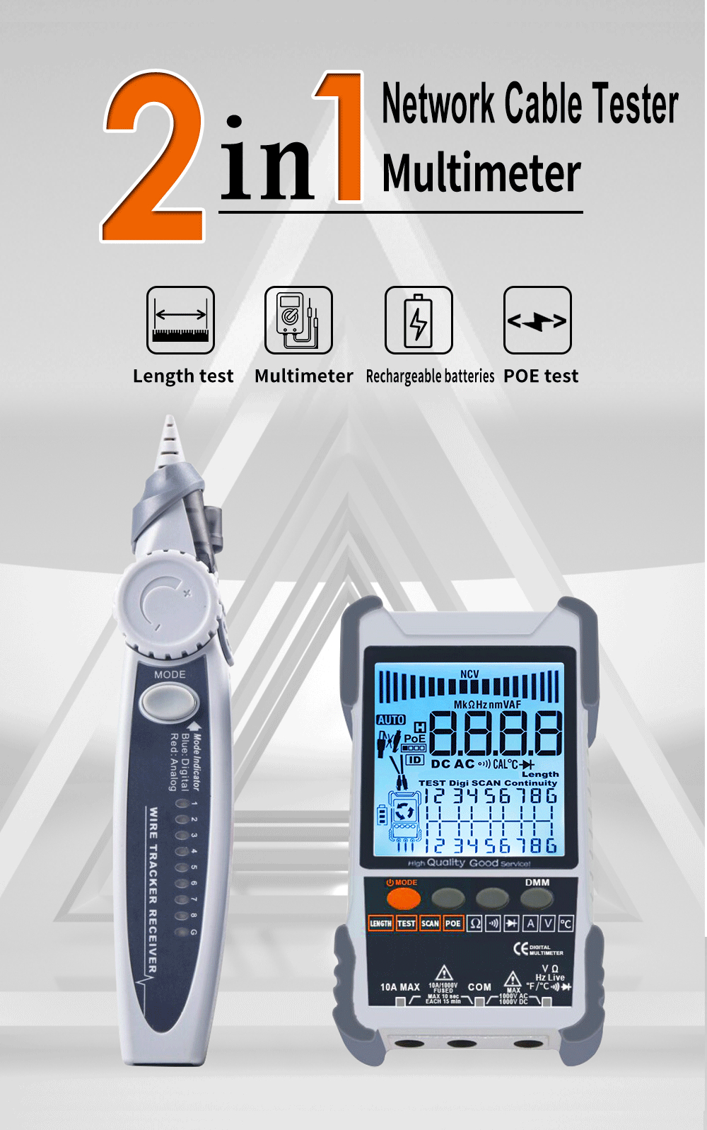 ET618 2-in-1 Rechargeable Network Cable Tester Finder and Multimeter for 500M/1640.4FT Network Cable