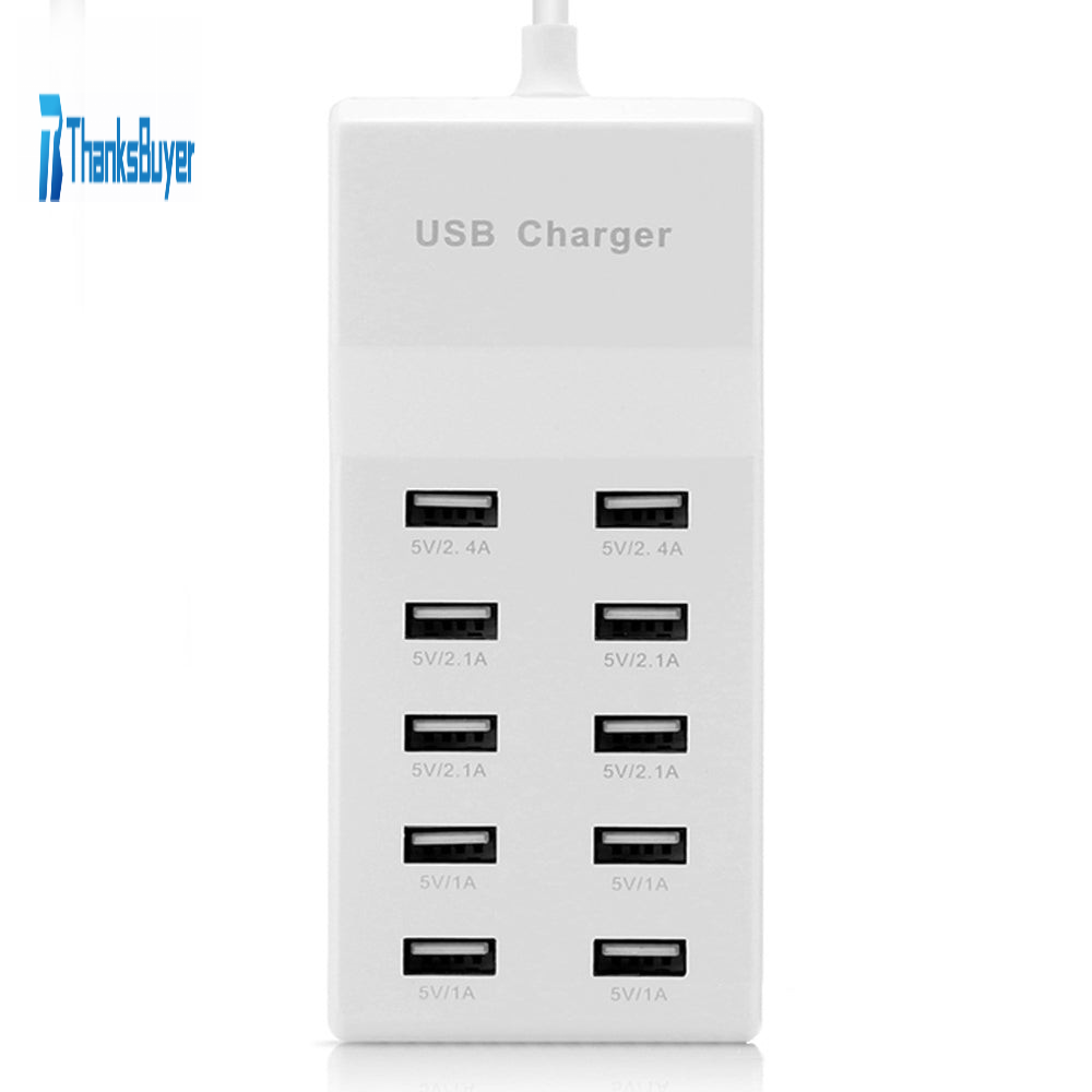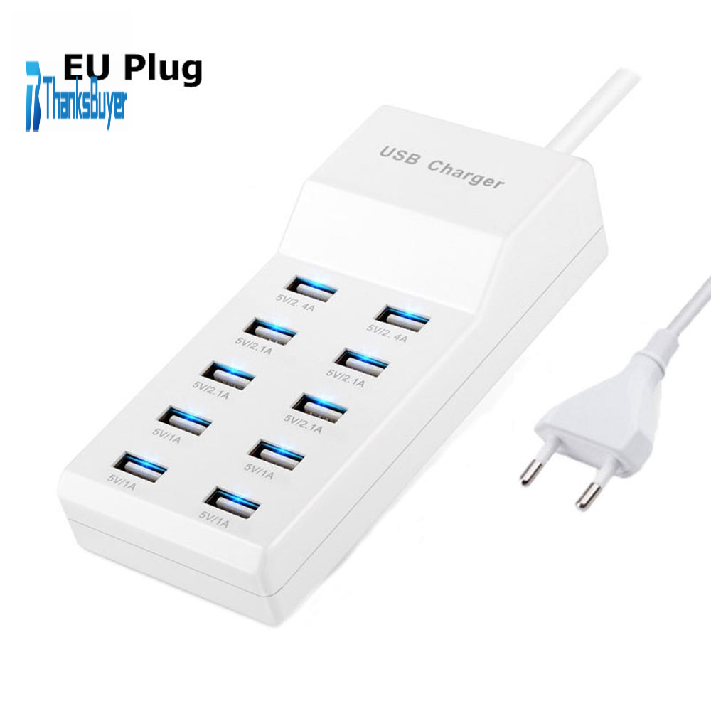 EU Plug Fast Charge 5V/10A 10 Ports 60W Fast USB Charging Desktop Mobile Phone Charger Adapter