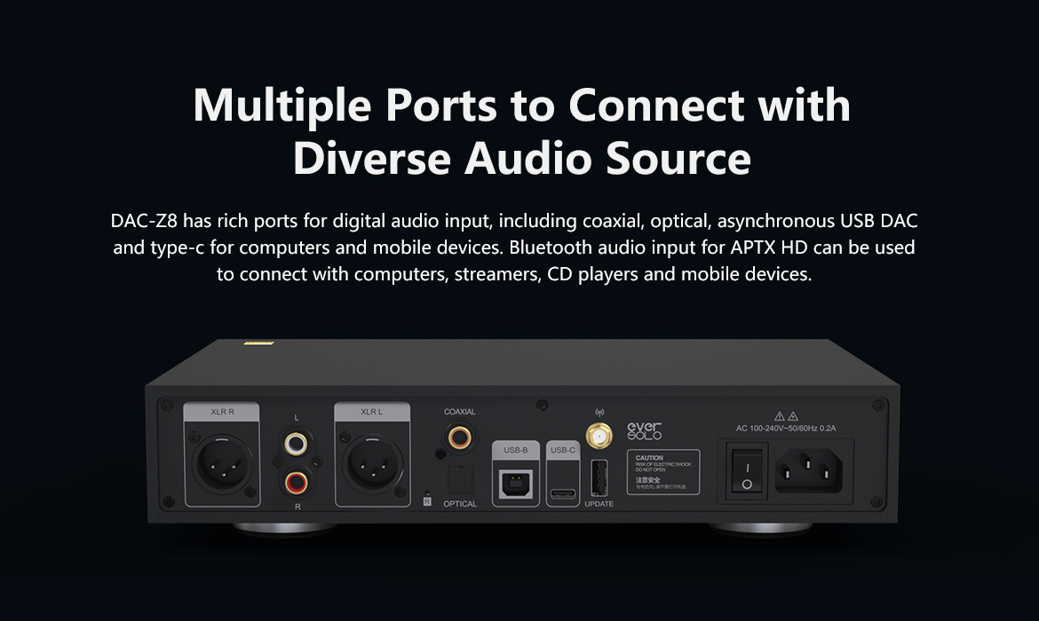 Eversolo DAC-Z8 ES9038Pro USB DAC Audio Decoder Headphone Amplifier DSD512 Native PCM 768KHz/32Bit