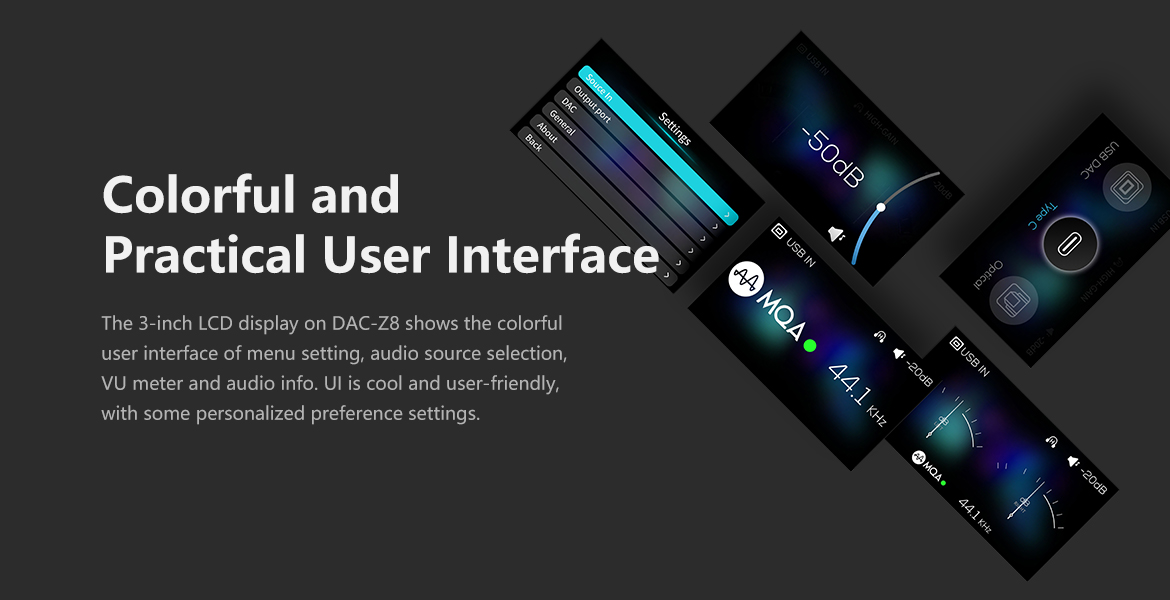 - USB-C DAC Input: For Windows (7, 10), Mac, Android and IOS. Up to stereo DSD512, PCM 768KHz 32Bit, for MQA