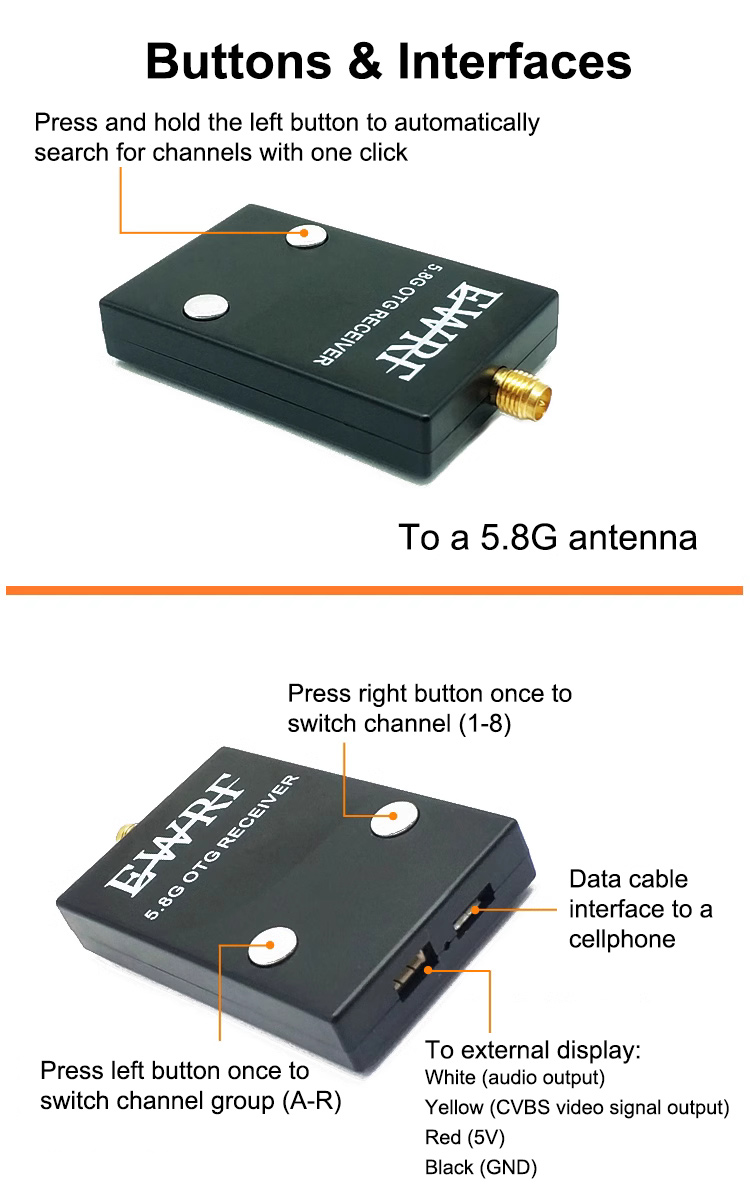 EWRF 5.8G UVC Receiver Cellphone 48CH 5.8 G OTG Receiver Set for FPV VTX UVC Video Acquisition
