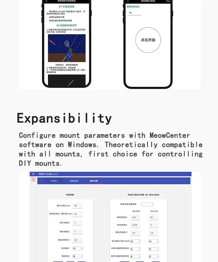 EXOS2 Meow Goto Kit 240MHz 2.4G WiFi/USB/Bluetooth Hand Control Equatorial Mount Goto Compatible with Maxvision EXOS2