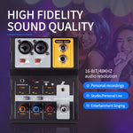 F-2A 2-Channel Recording Console Audio Mixer Mixing Console USB External Sound Card for Karaoke DJ