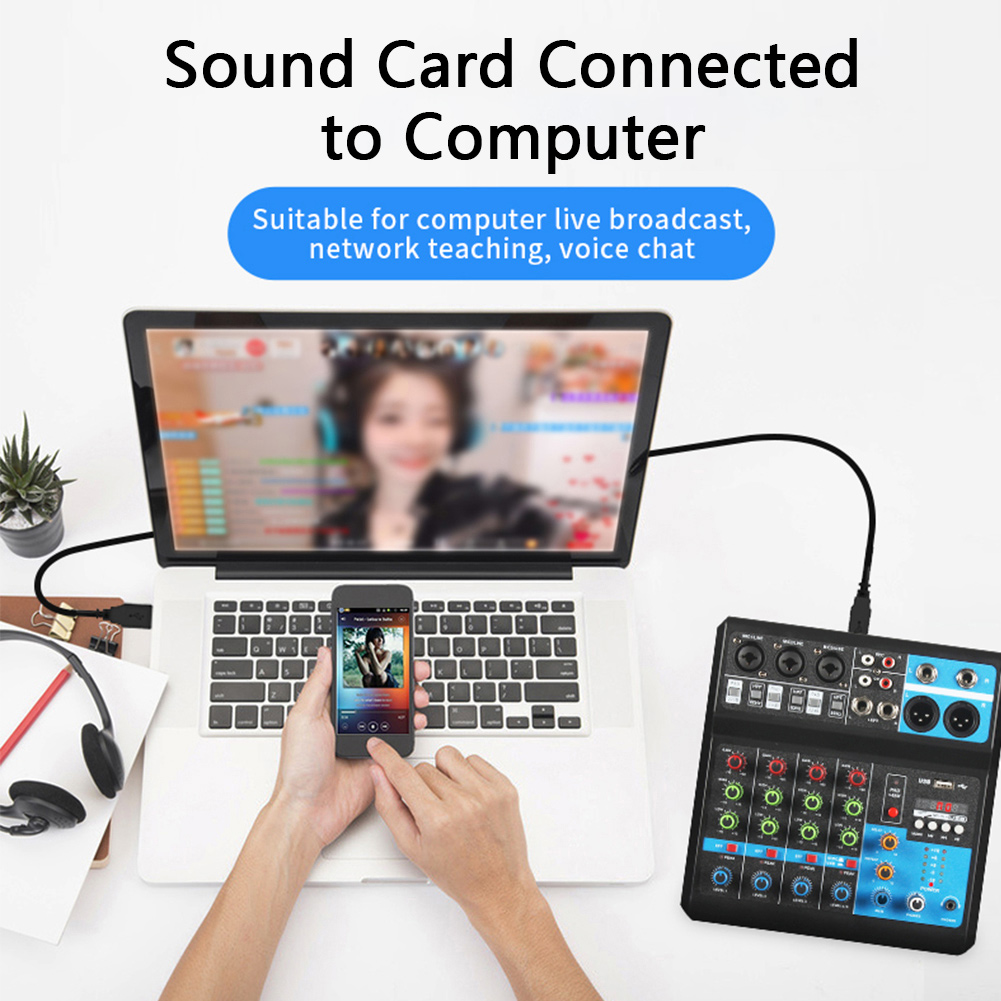 F-5A 5-Channel Audio Mixer Bluetooth Mixing Console Sound Card for PC Phone Livestreaming Recording