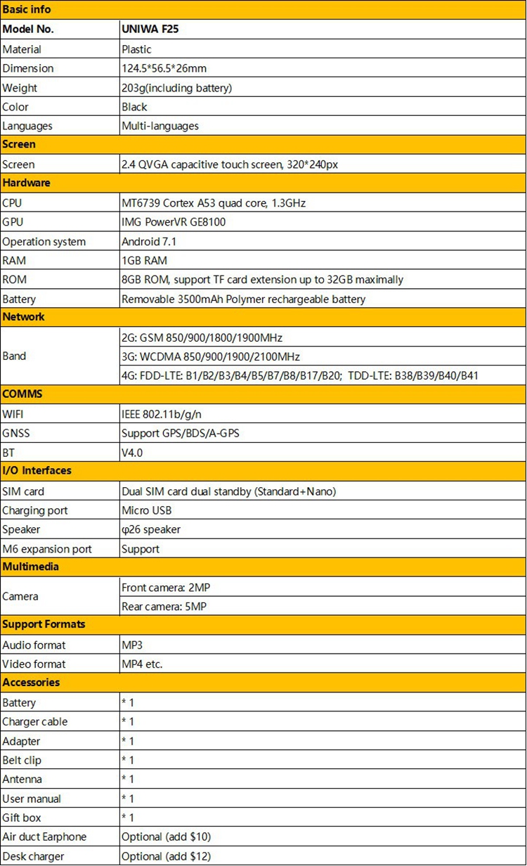 F25 Walkie Talkie 2G/3G/4G POC Handheld Radio with 2.4-inch Screen Support for GPS/BDS/A-GPS Compatible with Android 7.1
