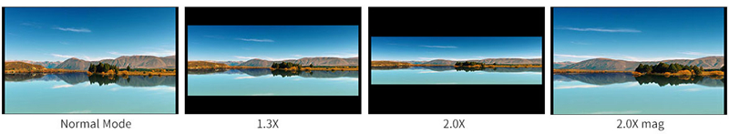 You can choose 1.3x, 2.0x, 2.0x mag, User-defined adjustment: 1.20x~2.00x. Built-in selection of no squeeze, 1.3X or 2.0X allows you to use anamorphic lenses or adapters and see the image unsqueezed, even if your camera does not de-squeeze in camera. A 2.0X mag mode, magnifies the center of your image so you can check the focus of your scaled image.