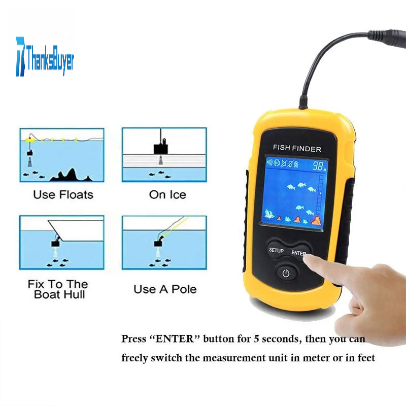 2. Use the fish finder in smooth and hard places (like water tank, swimming pool, water bucket, or fish pond) will cause repeatedly sonar reception, or the the detection will be inaccurate. Please use it in outdoor deep water.