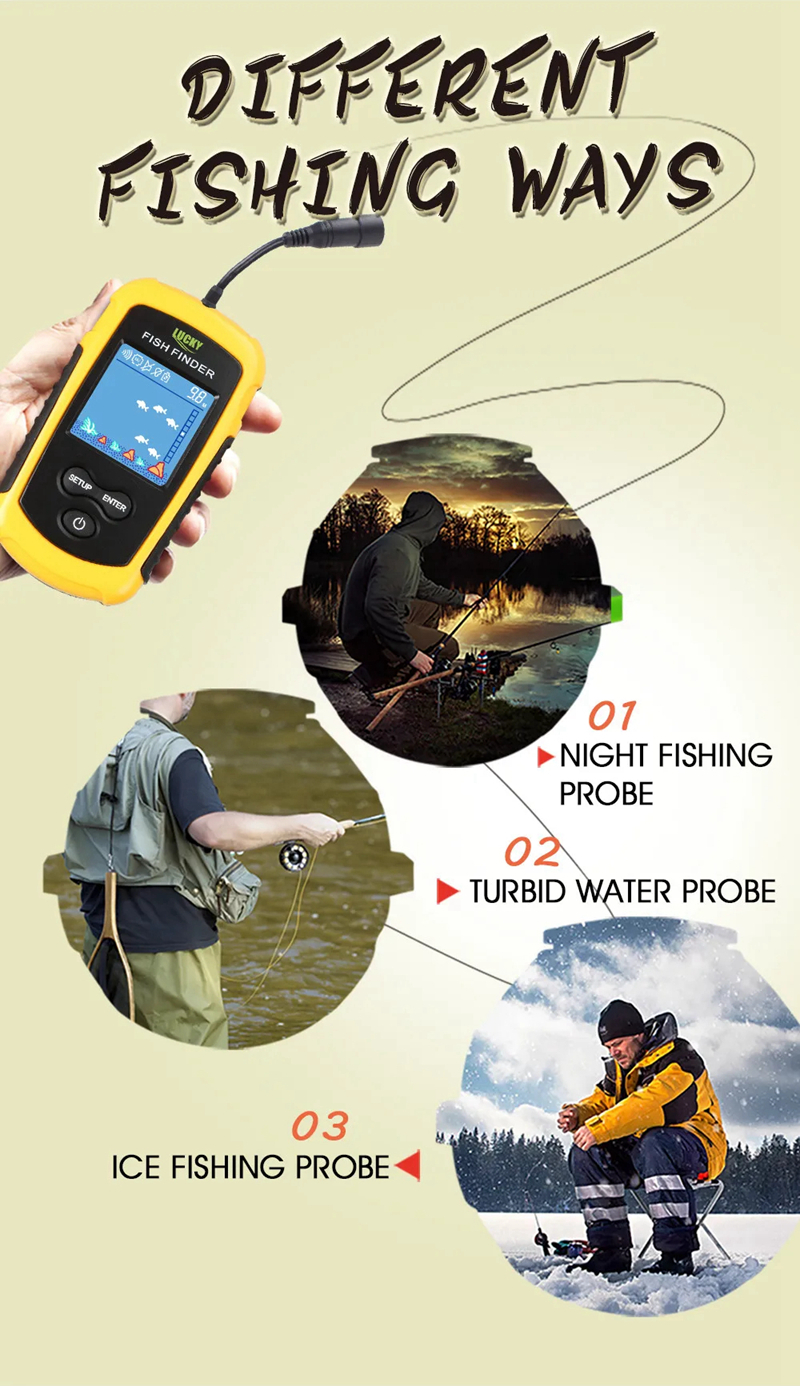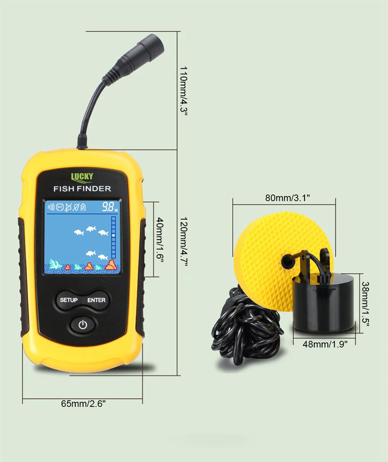 FFC1108-1 100M/328FT Sonar Fish Finder Portable Fish Finder Fish Tracking Device with Wired Sensor