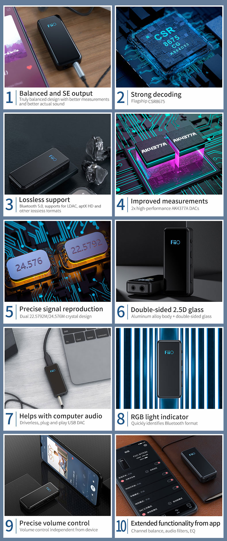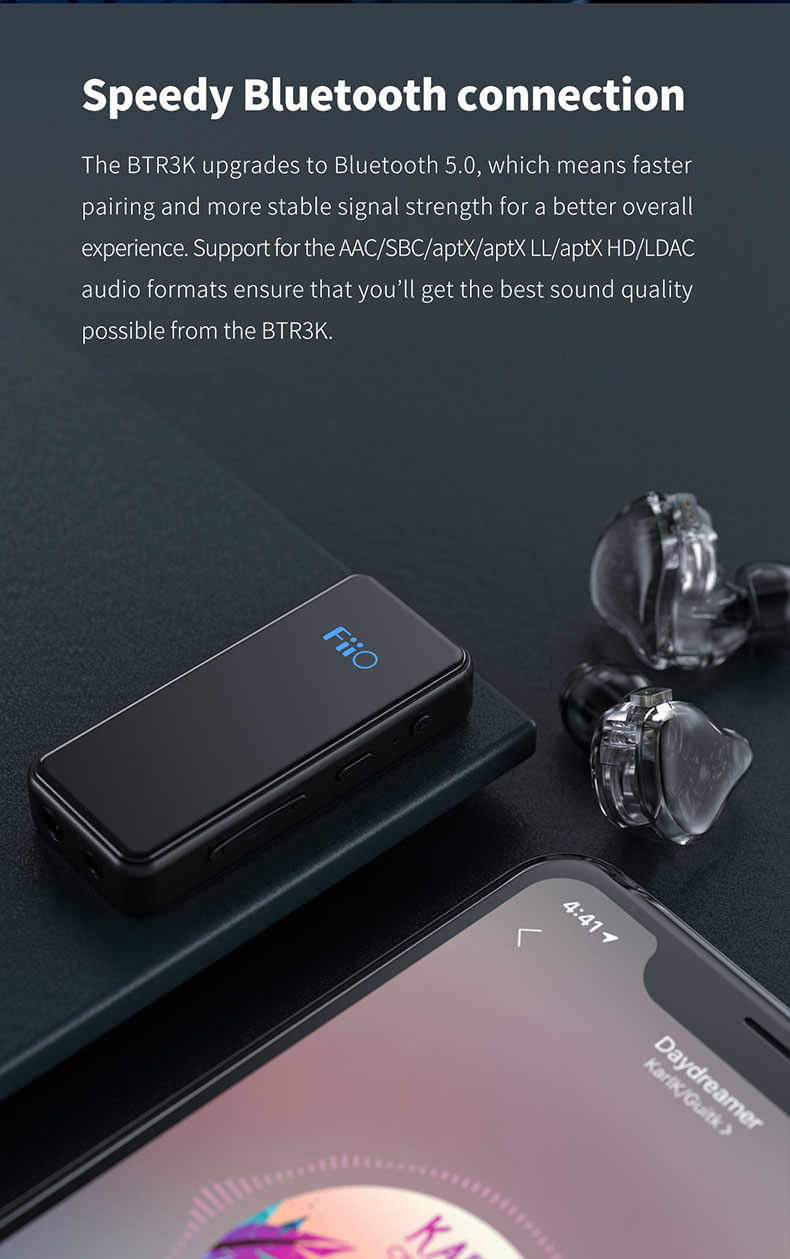 FiiO BTR3K Portable Bluetooth Receiver Balanced Headphone Amp USB DAC AK4377A 2.5MM/3.5MM Earphone