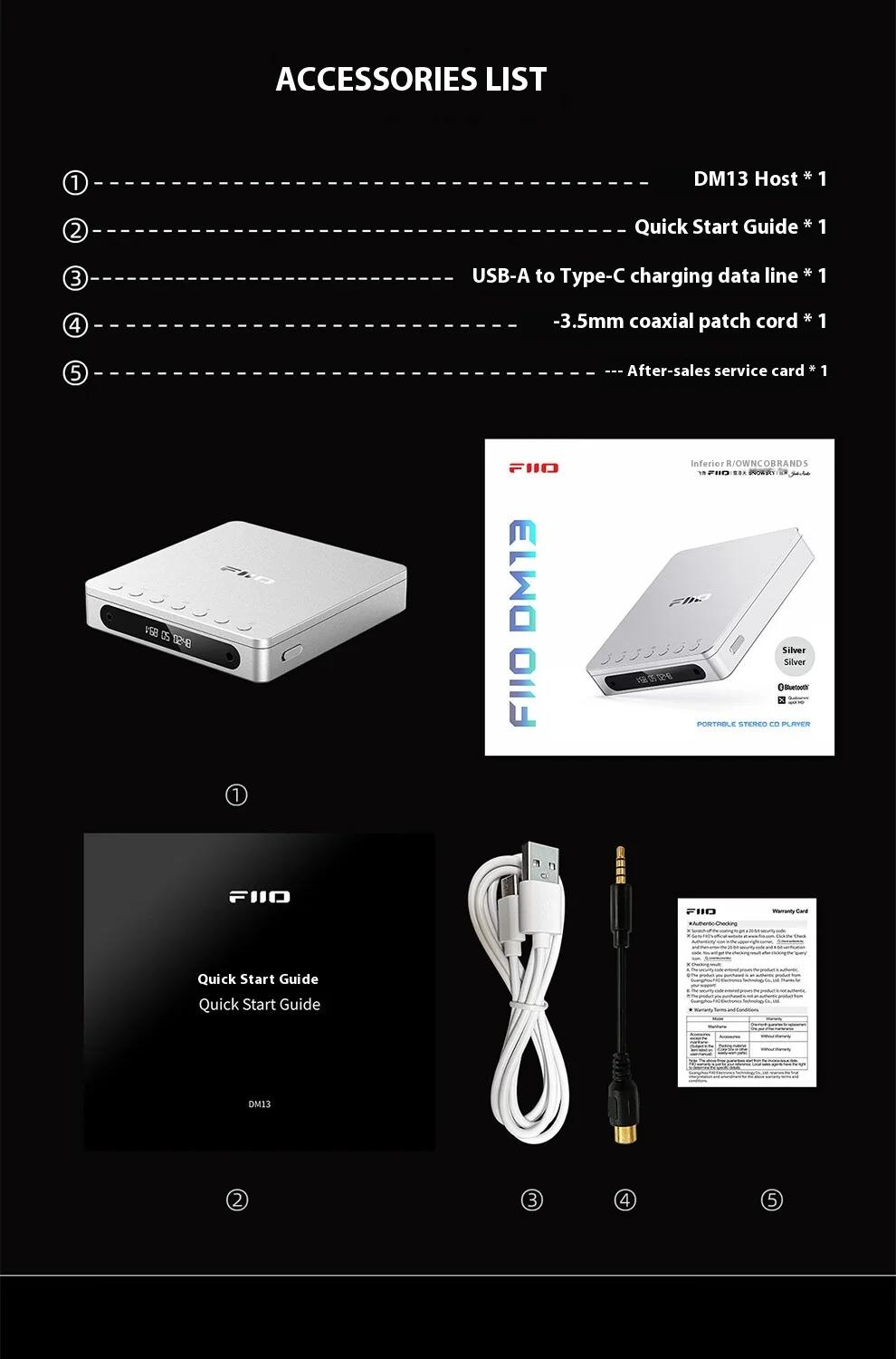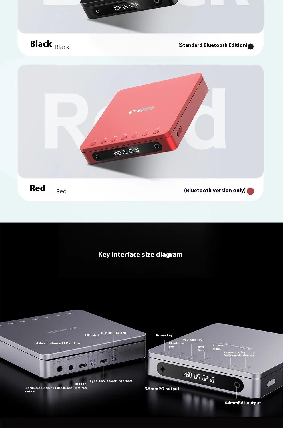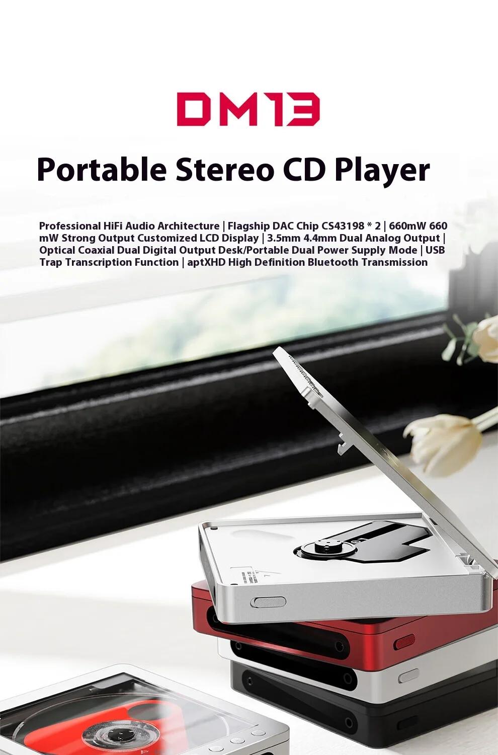 FiiO Transparent DM13 Portable CD Player CS43198x2 DAC Bluetooth HiFi Player 3.5mm+4.4mm Output Turntable