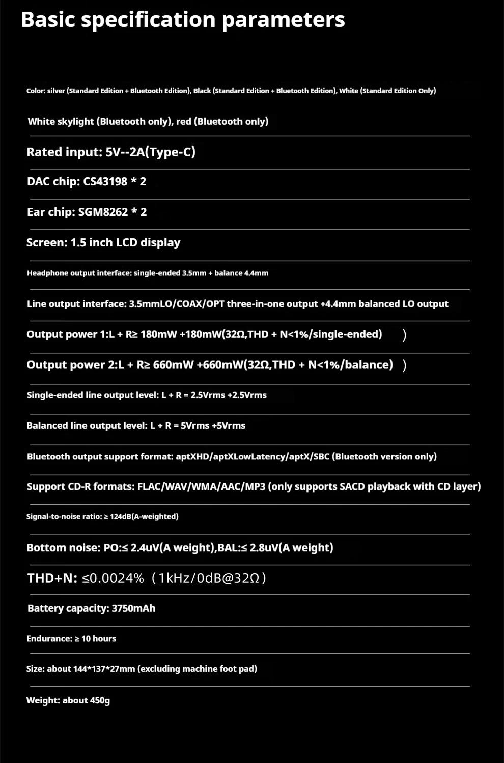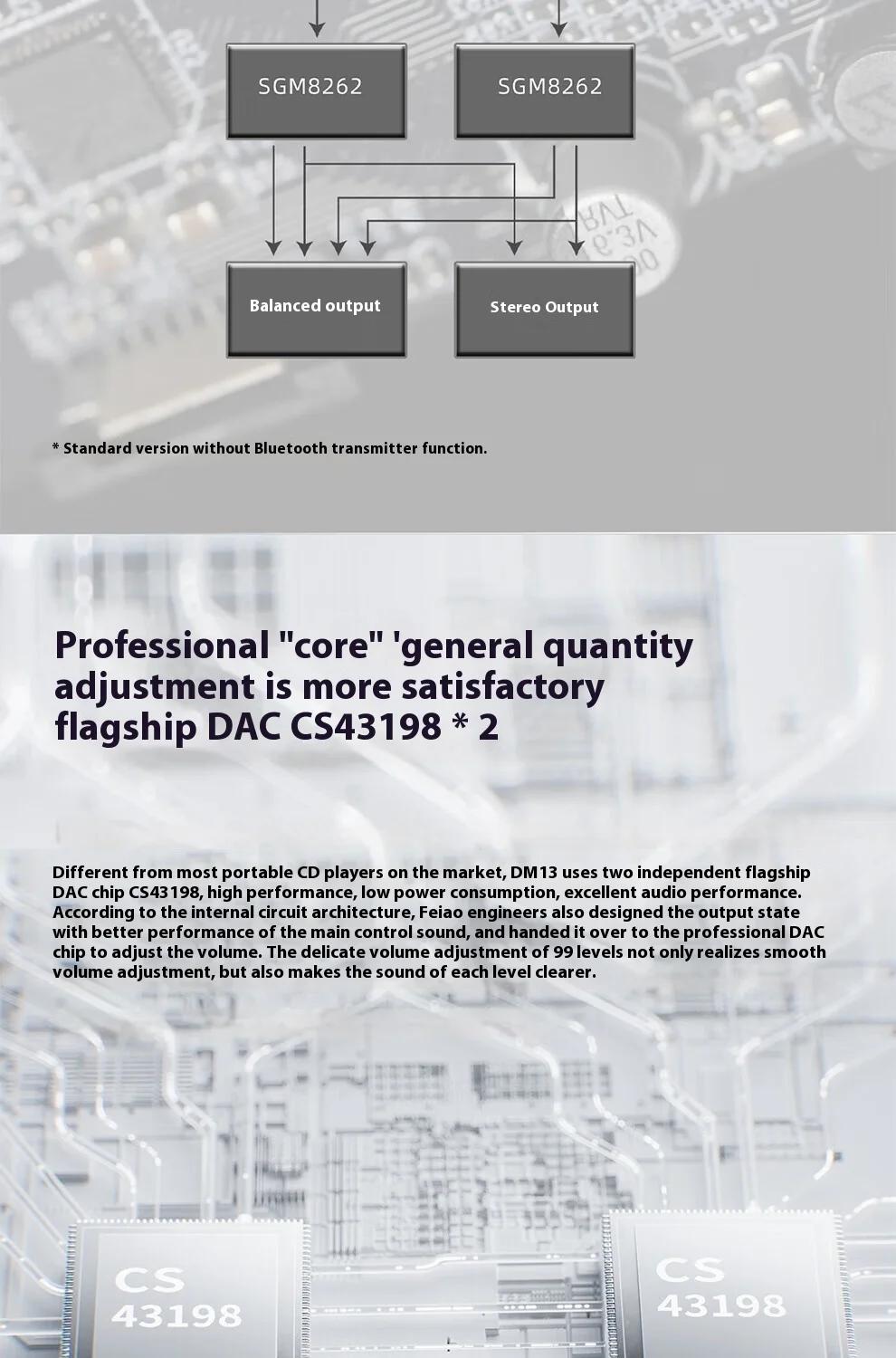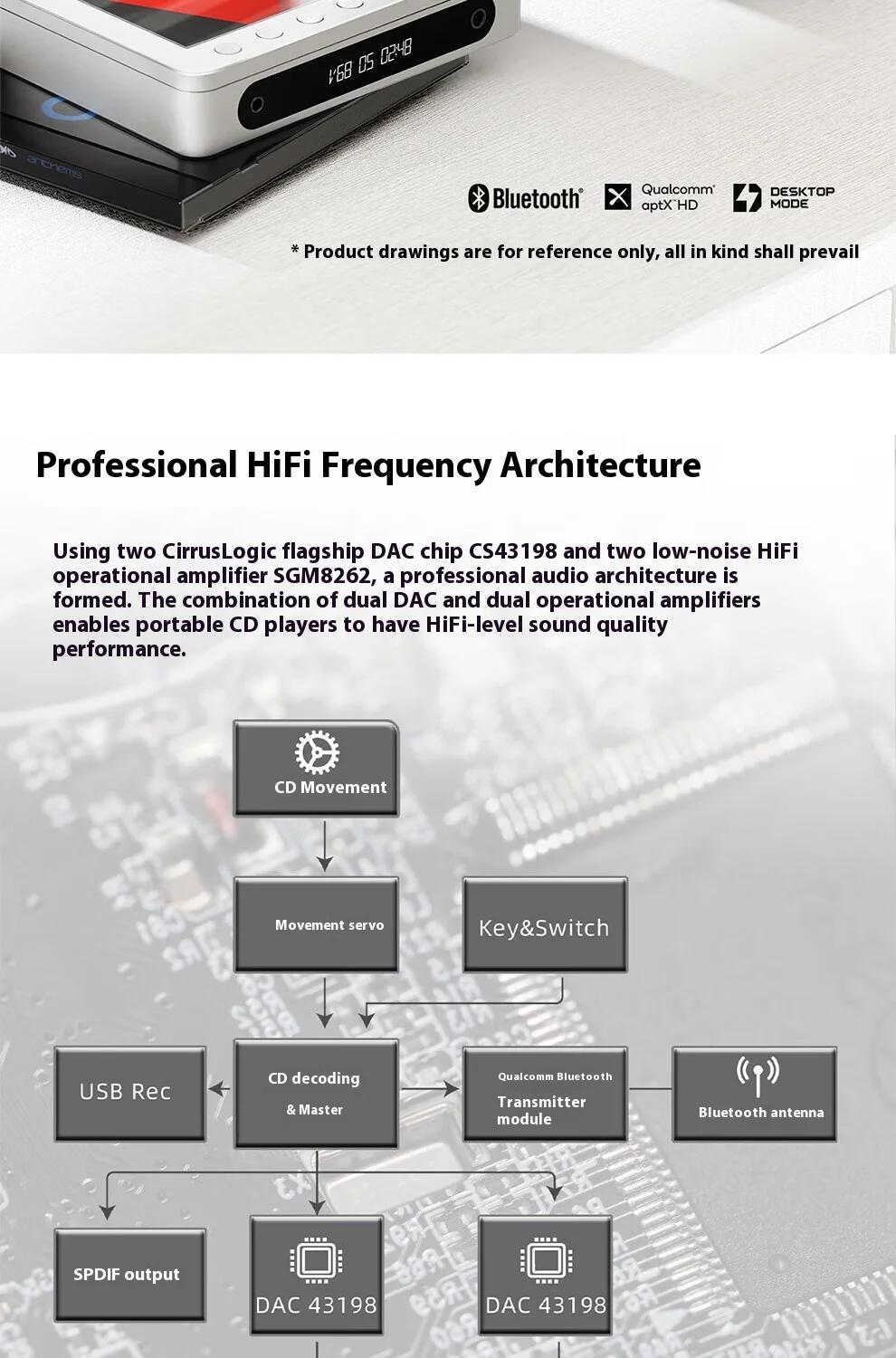FiiO Transparent DM13 Portable CD Player CS43198x2 DAC Bluetooth HiFi Player 3.5mm+4.4mm Output Turntable