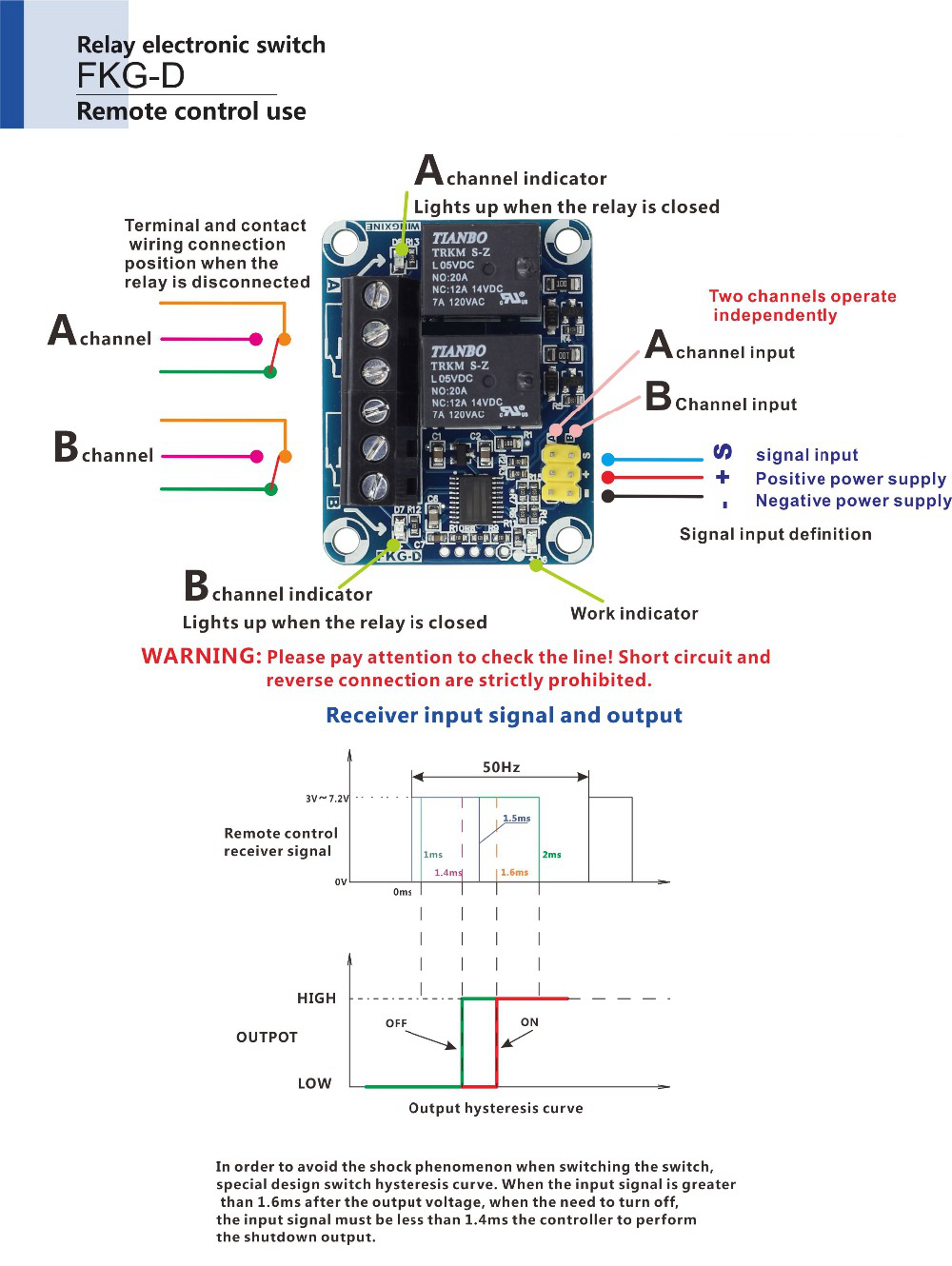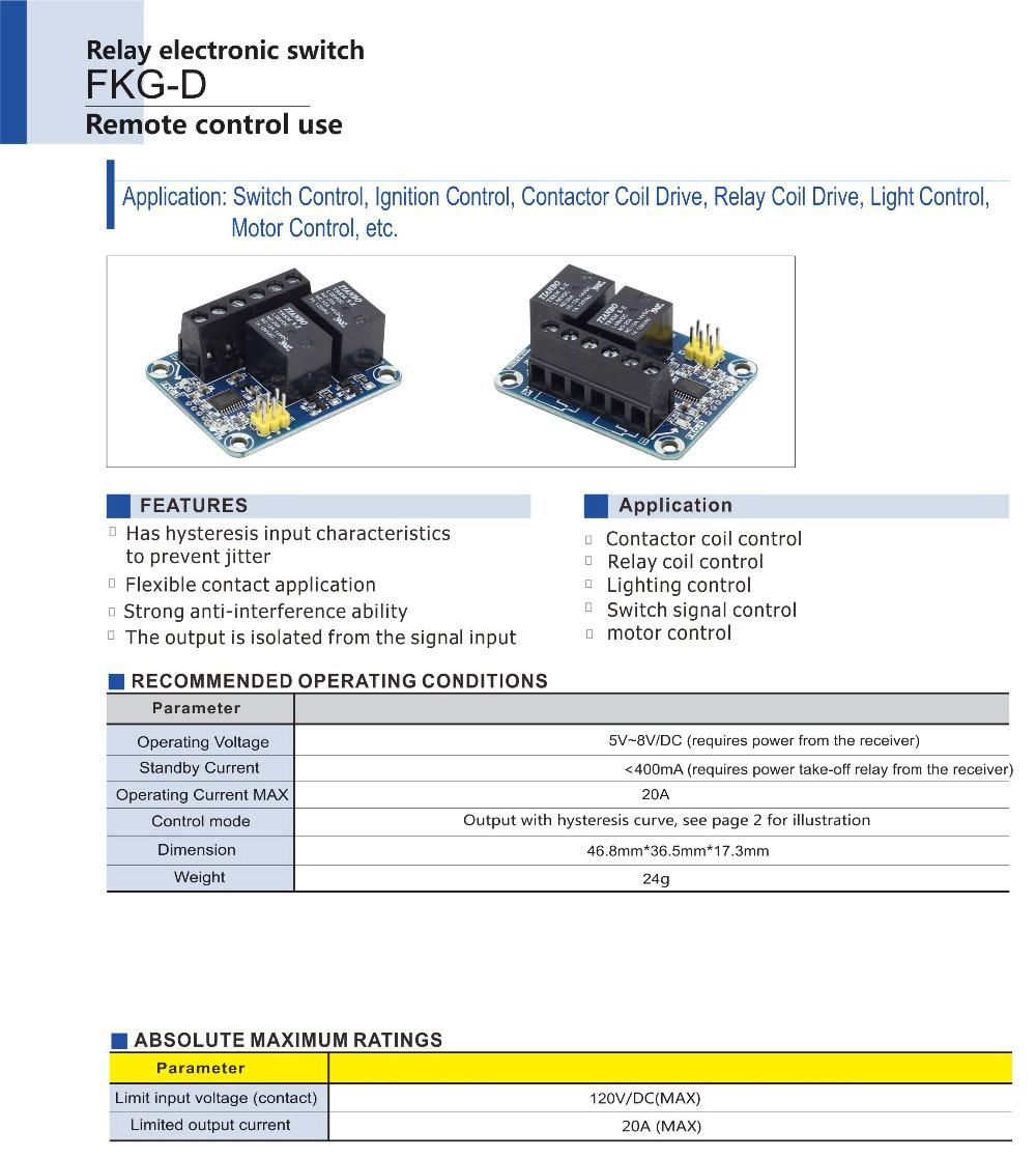 FKG-D Dual-Channel Relay Electronic Switch 20A Mechanical Contact Suitable For RC Remote Control