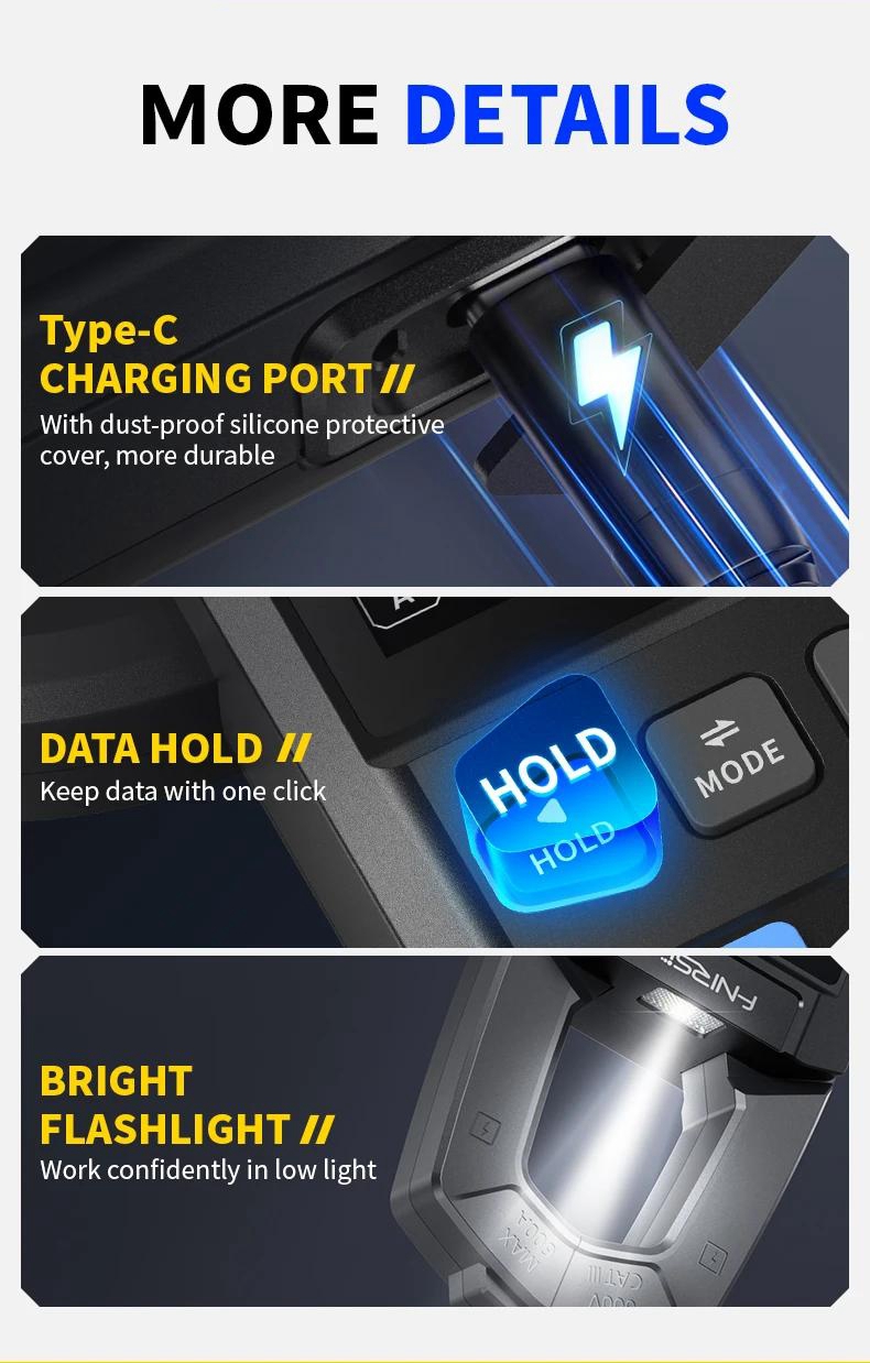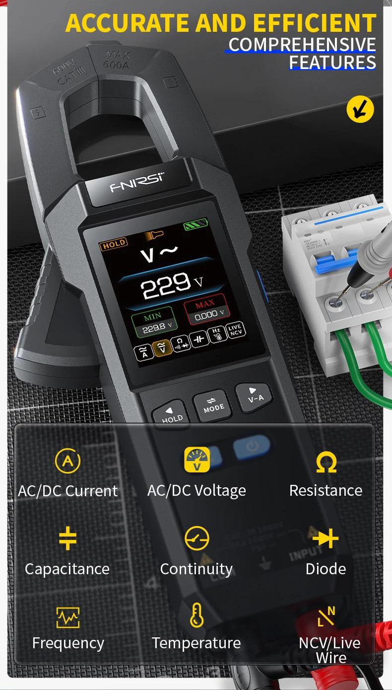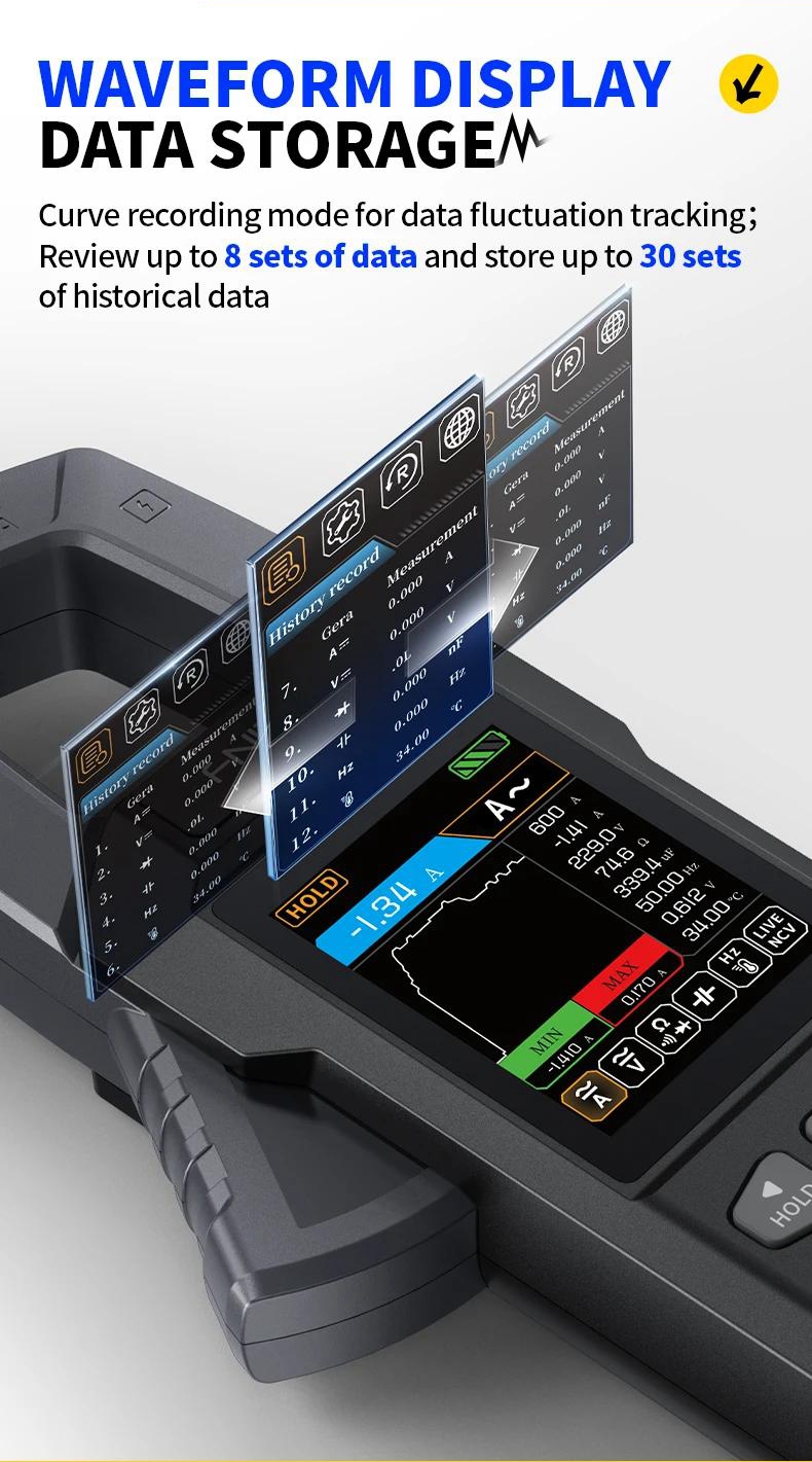 FNIRSI DMC-100 Clamp Type Multimeter Automatic Intelligent High Precision Ammeter with Temperature Probe