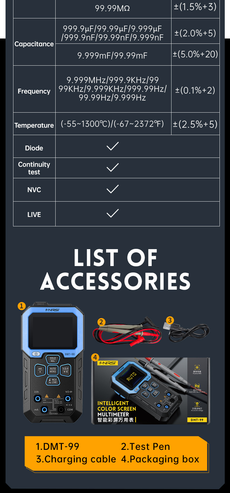 FNIRSI DMT-99 Multifunctional Intelligent Digital Multimeter High Precision Measurement with 2.4-inch TFT HD Color Screen