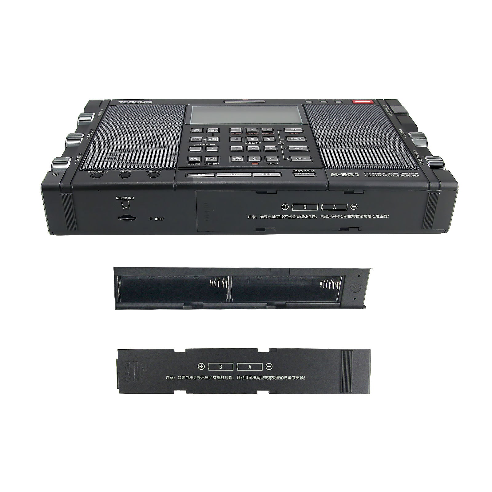 - Medium wave and short wave adopt analog high frequency circuit, multiple frequency conversion and modern DSP digital demodulation technology, which greatly improve the receiving sensitivity, selectivity and anti-image interference ability