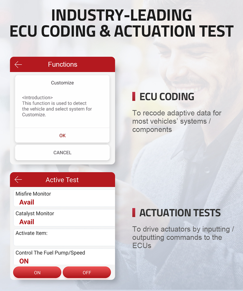 - Convert your devices for Android/iOS into an OE-Level Bluetooth scanner to customize, diagnose, and service your car. ECU Coding, Active Test, All Systems Diagnostics, and 16 Maintenance Services for over 115 vehicle brands (for Honda, Ford, Chrysler, Hyundai, Kia, Benz, GM, VW, BMW, etc.)