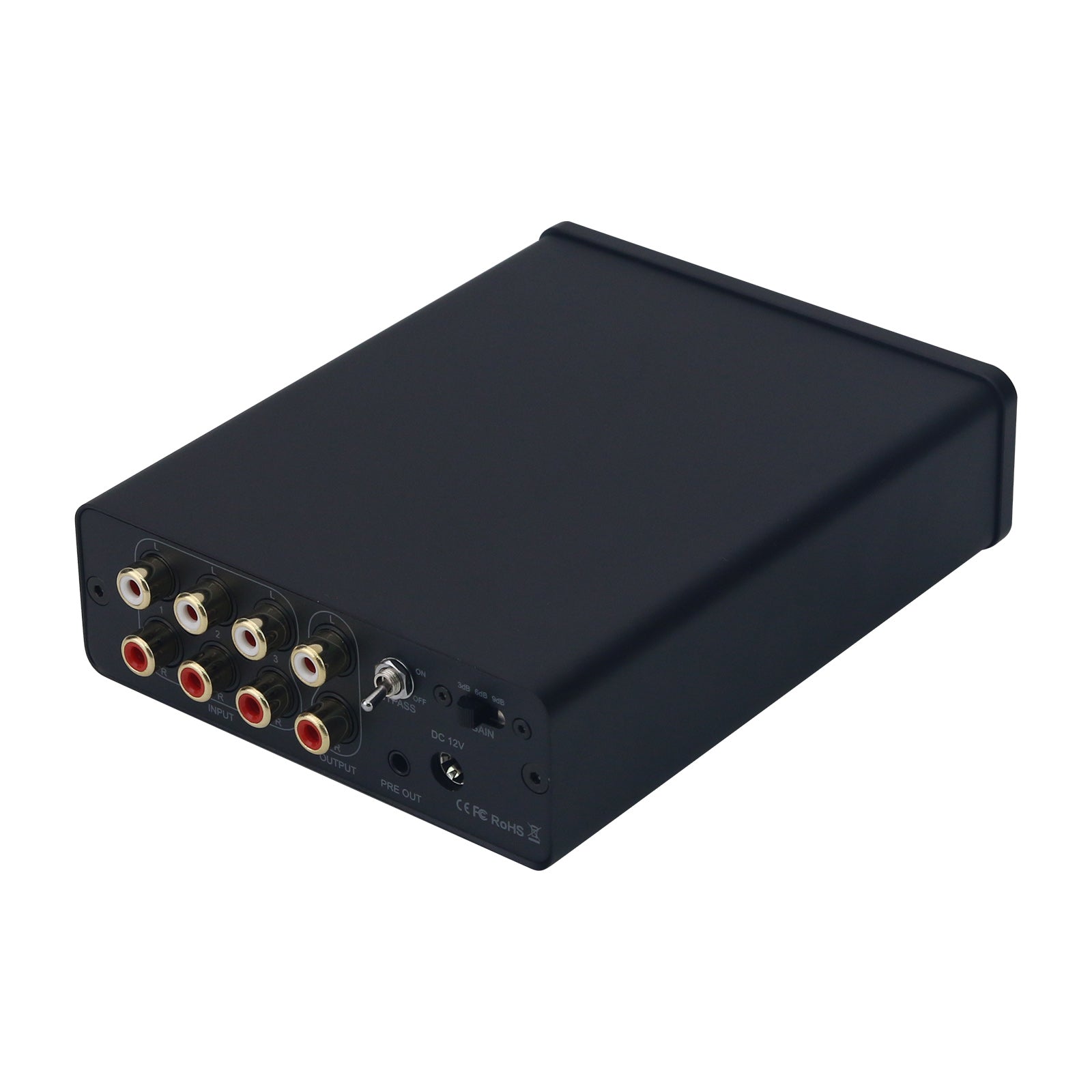 Fosi Audio P4 Mini Preamplifier Preamp with Bypass Function, Adjustable Gains and 3 Groups of RCA Inputs