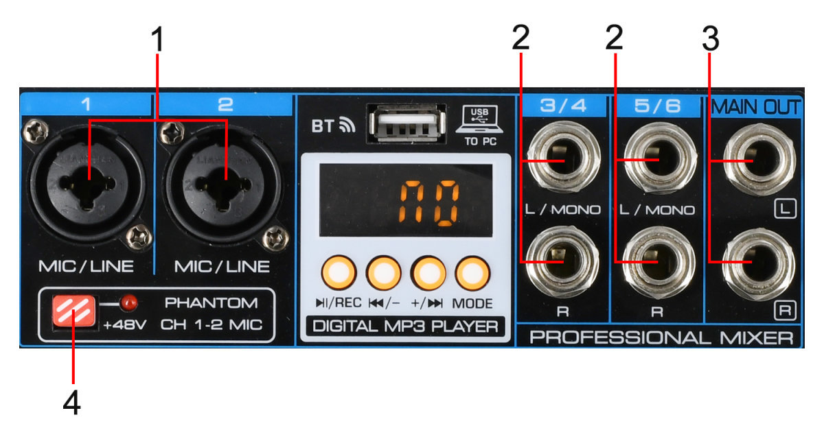 When the button is turned on, the LED light is on, provide DC +48V phantom power to XLR  plug on MIC mono input.