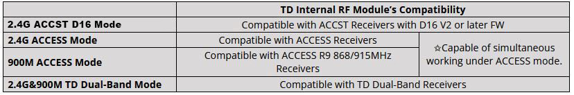 · 2.4G & 900M TD Mode (Compatible with TD Receivers)