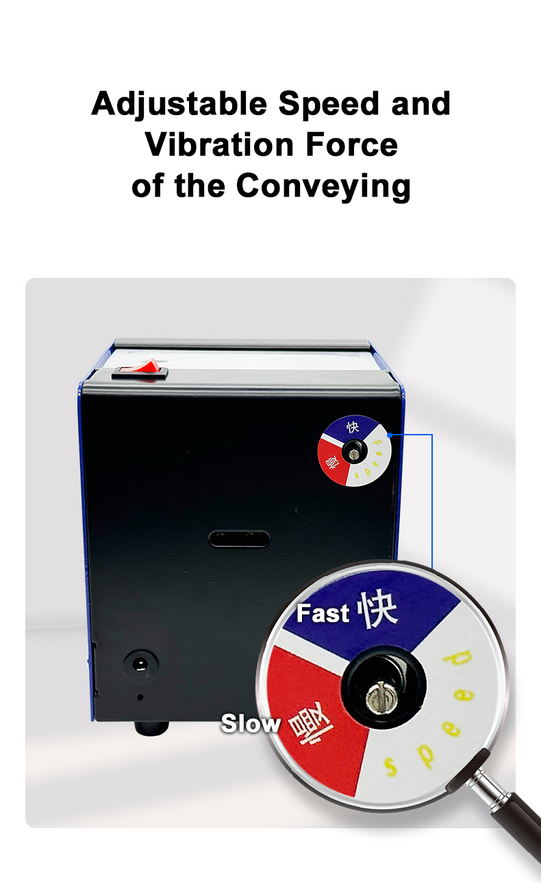 * Digital display counting function and 1-9999 pieces can be set freely. After you set the number of pieces, press the green button to get as many as you want. Every time the button is pressed, it will automatically zero, count and discharge screws. You can also set the interval to let the machine automatically discharge and count.