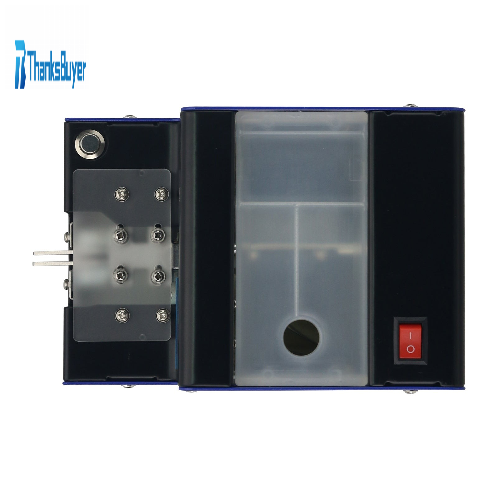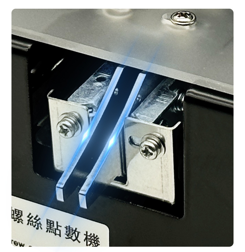 * The screw counting machine has a transparent protective cover, a green button, and a track with adjustable width.