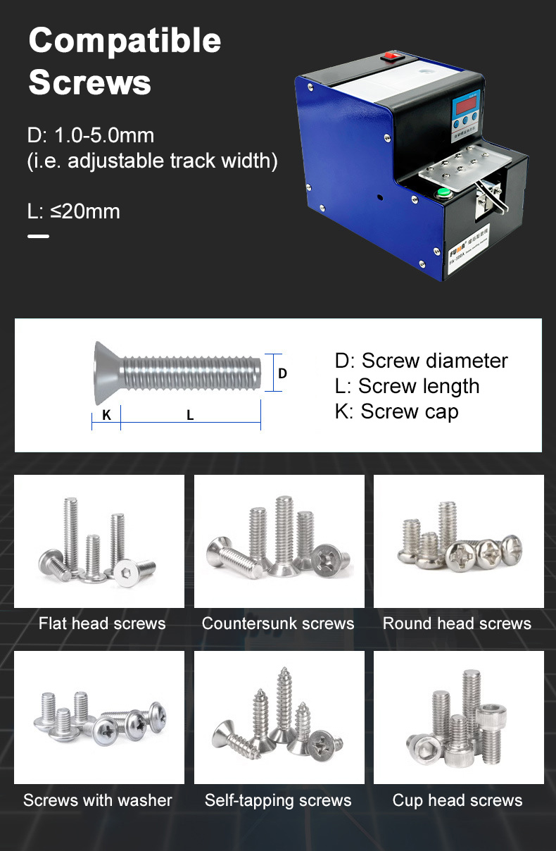 * Applicable screws: 1.0~5.0mm adjustable