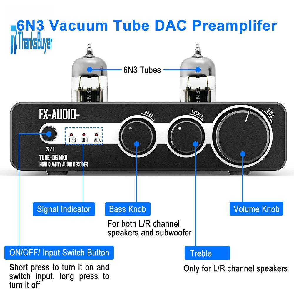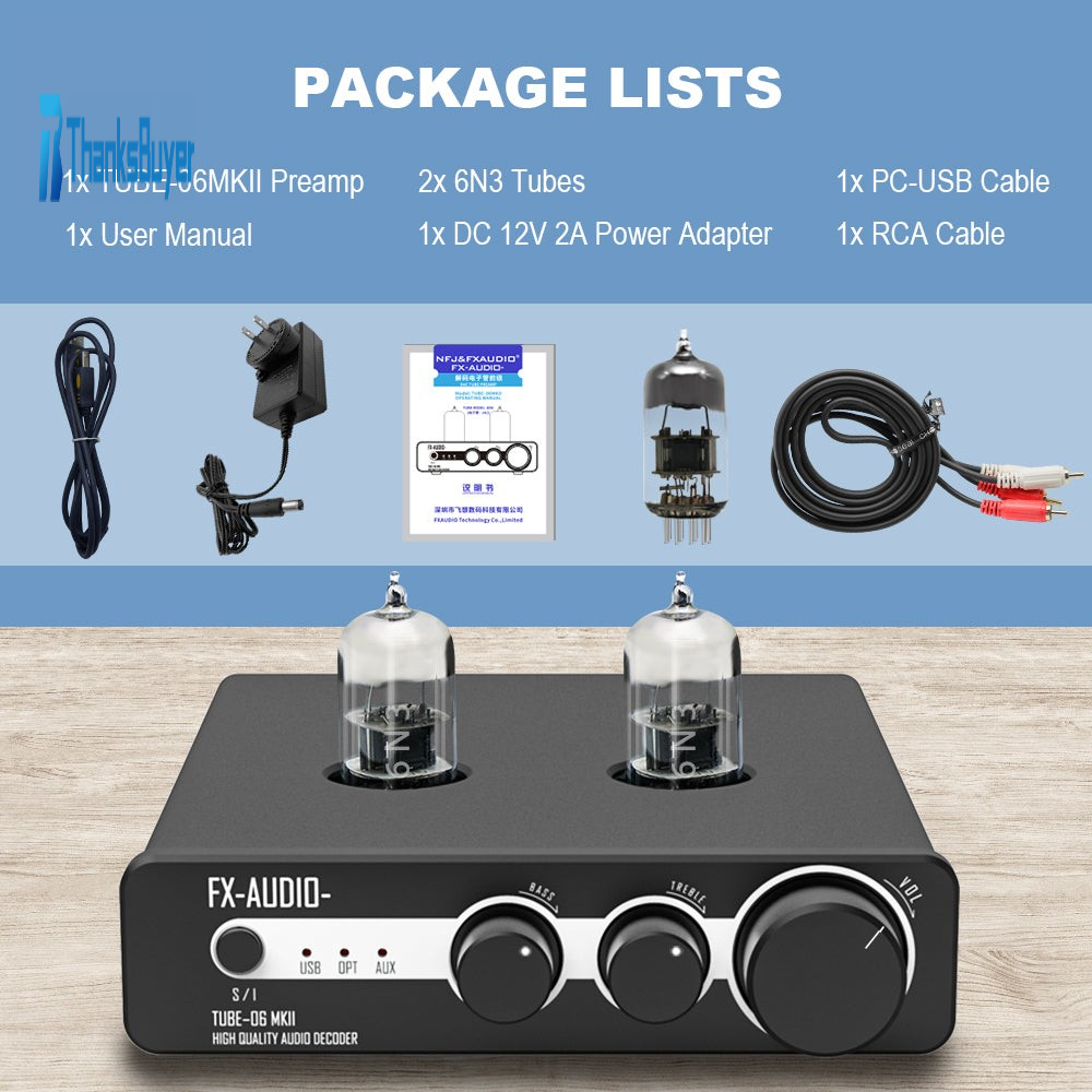 FX-AUDIO- DAC Desktop USB DAC ES9018K2M 6N3 Tubes High Quality Audio Decoder TUBE-06MKII Black