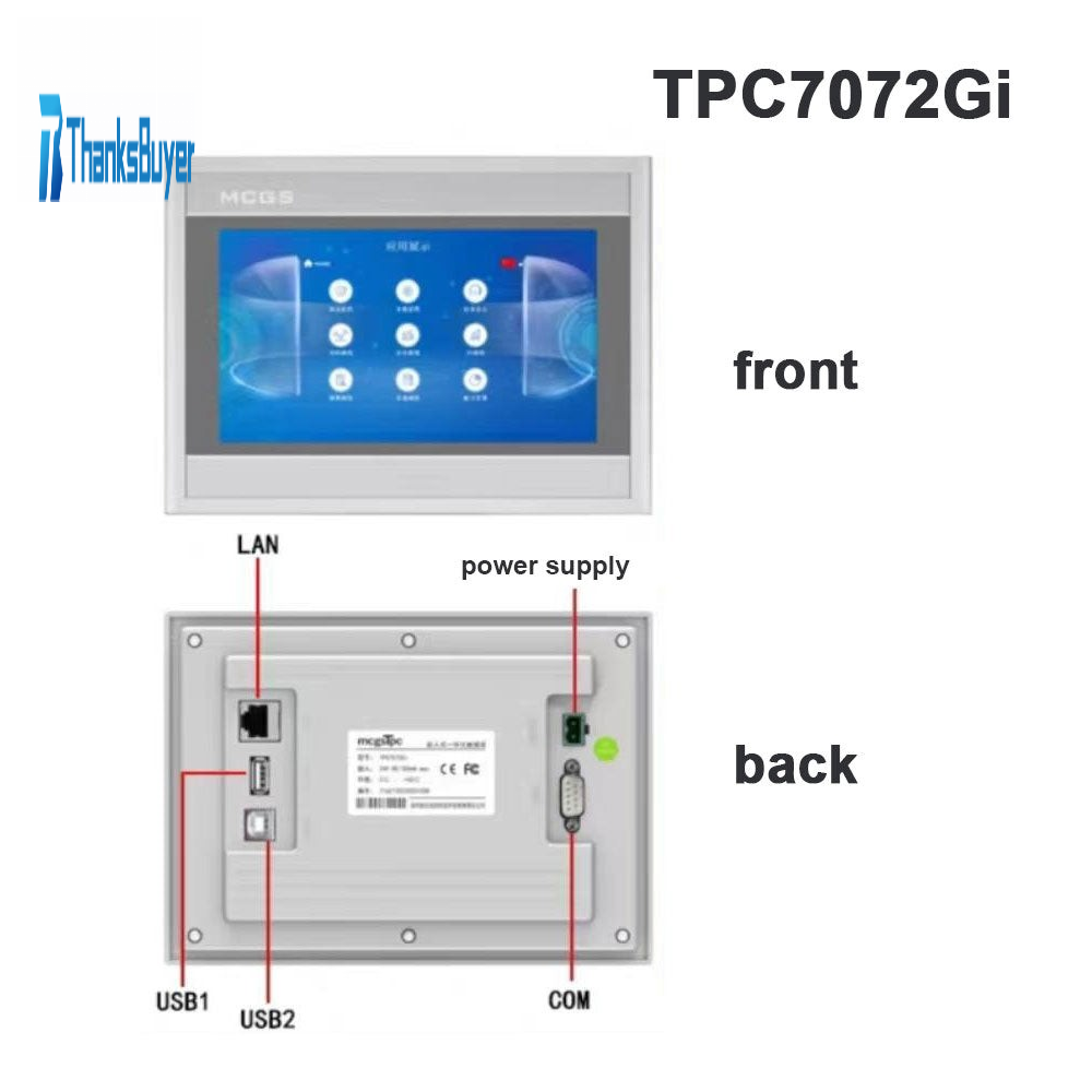 The TPC7072Gi is a newly launched high-performance touch screen, equipped with an advanced Cortex quad-core CPU running at 1GHz. It features a 7-inch high-brightness TFT LCD display with a resolution of 800×480, along with a 4-wire resistive touch screen. The device comes pre-installed with the MCGS configuration software (Linux version, runtime edition), offering reliable performance for industrial automation applications.