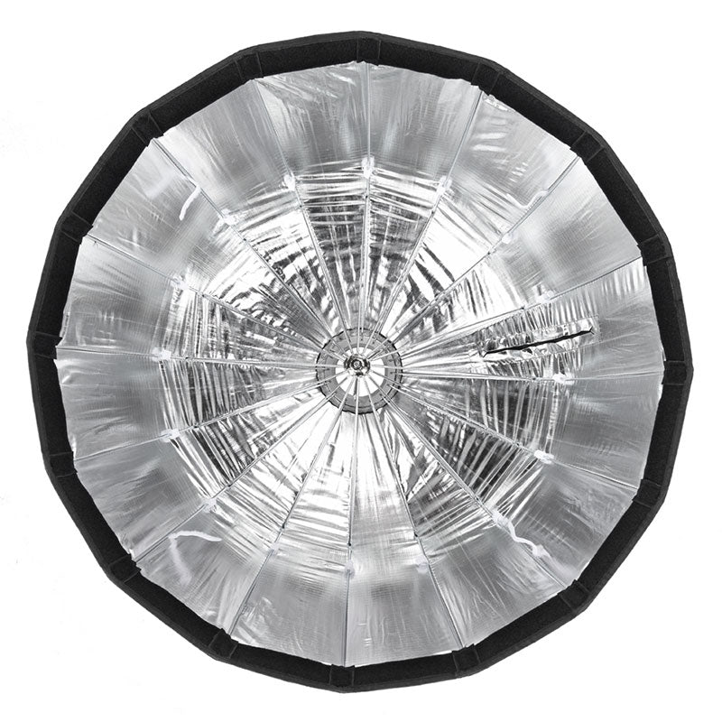 - Parabolic design is more gentle. Parabolic design, internal reflection is more uniform, the light exit surface is closer to the circle, with studio flash use, easy to get a more beautiful eye effect
