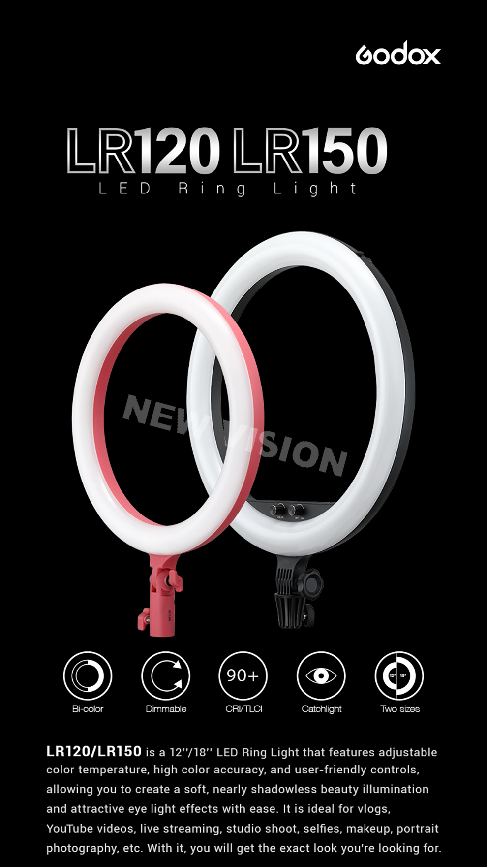 Godox LR150 LED Ring Light 38W Dimmable Ring Fill Light Dual Color Temperature For Live Streaming