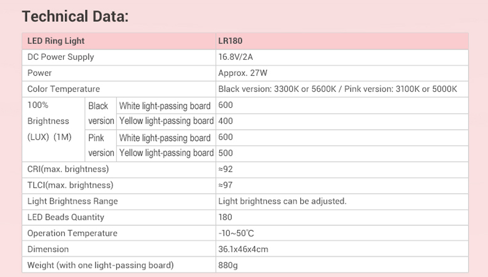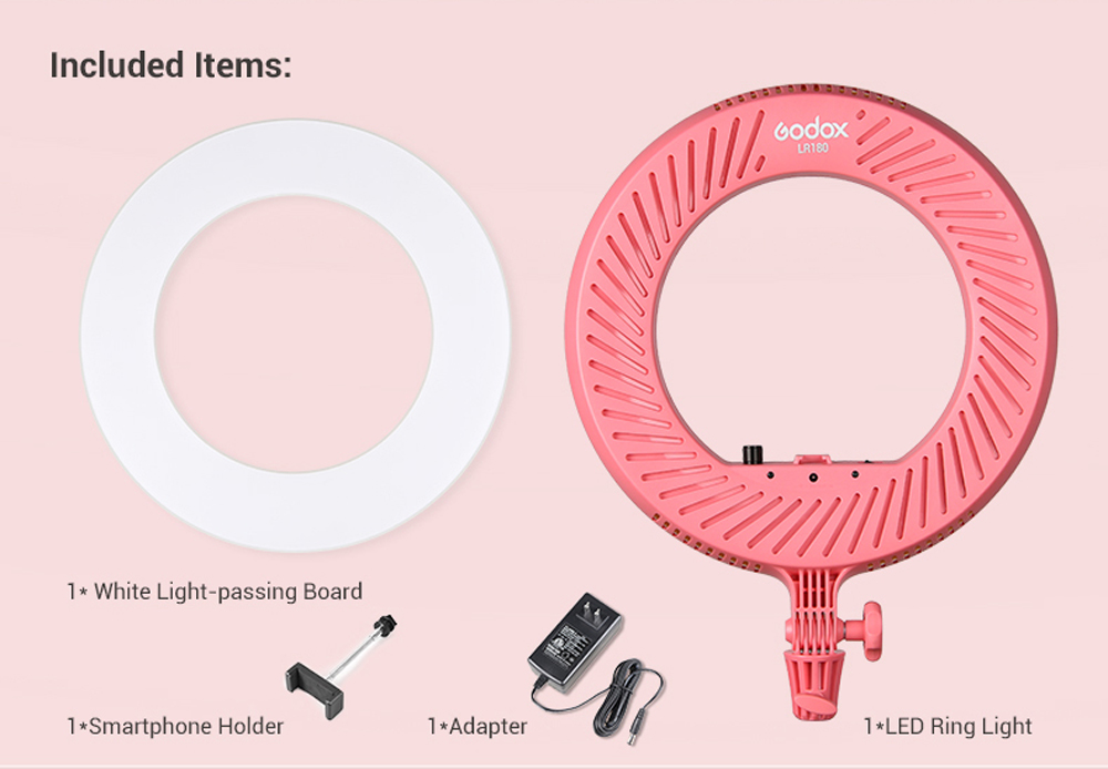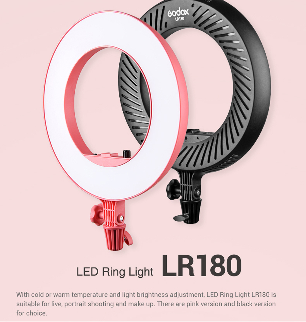 Godox LR180 LED Ring Light 27W Ring Fill Light Dimmable For Live Streaming Makeups Selfie Videos
