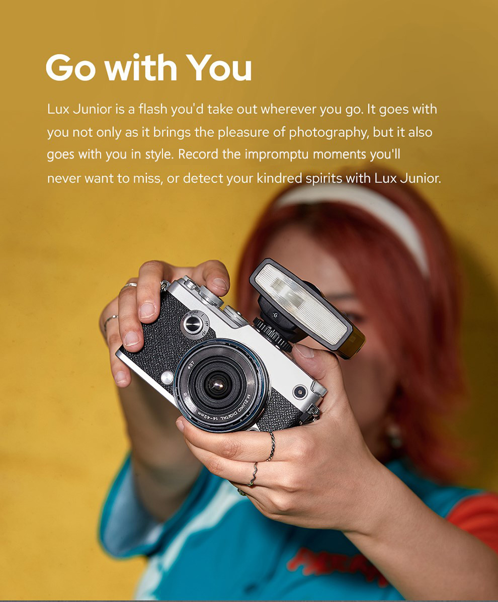 Lux Junior is a flash you are eager to take out wherever you go. It goes with you not only as it brings the pure pleasure of photography but also goes with you in style. Record your impromptu moments or detect your kindred spirits with Lux Junior.
