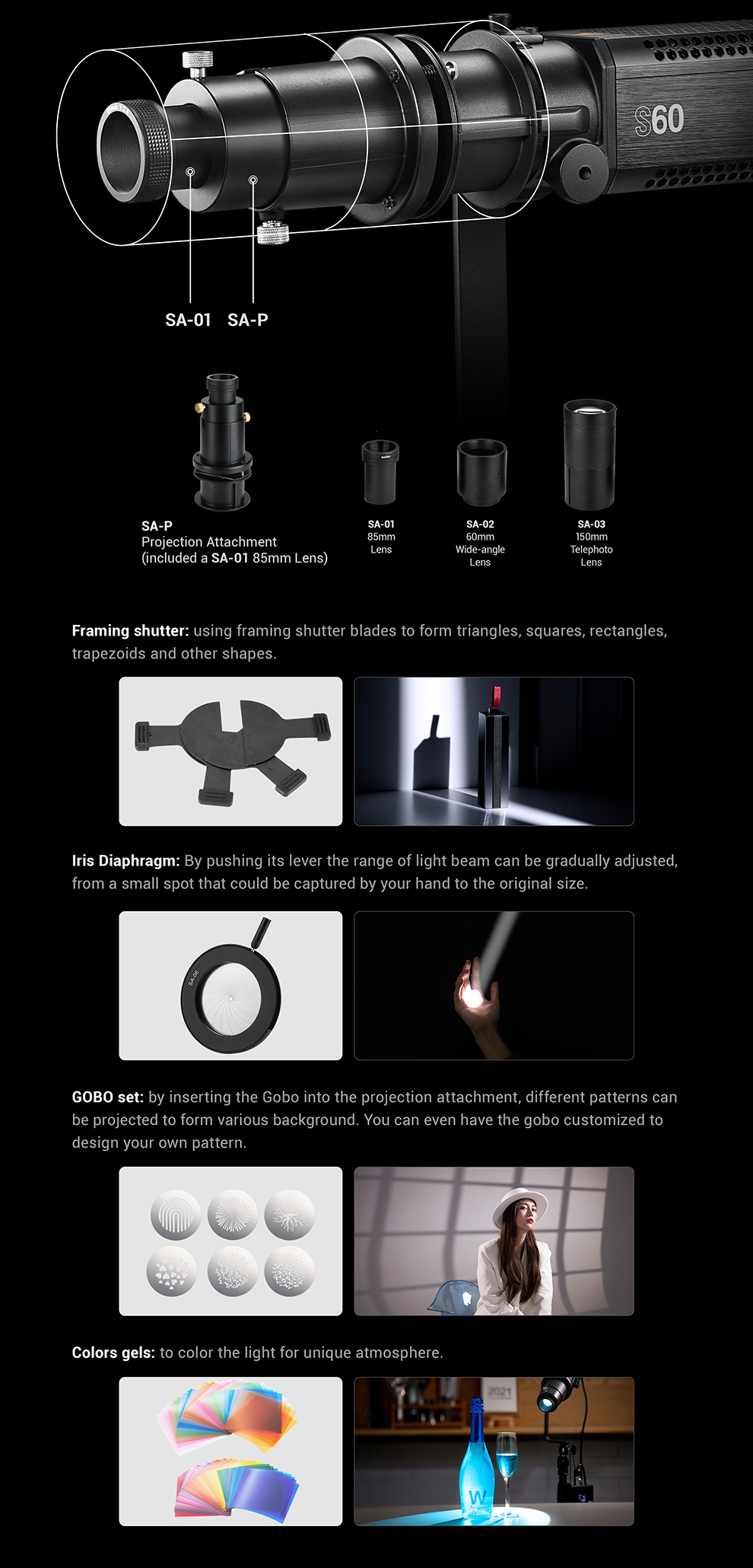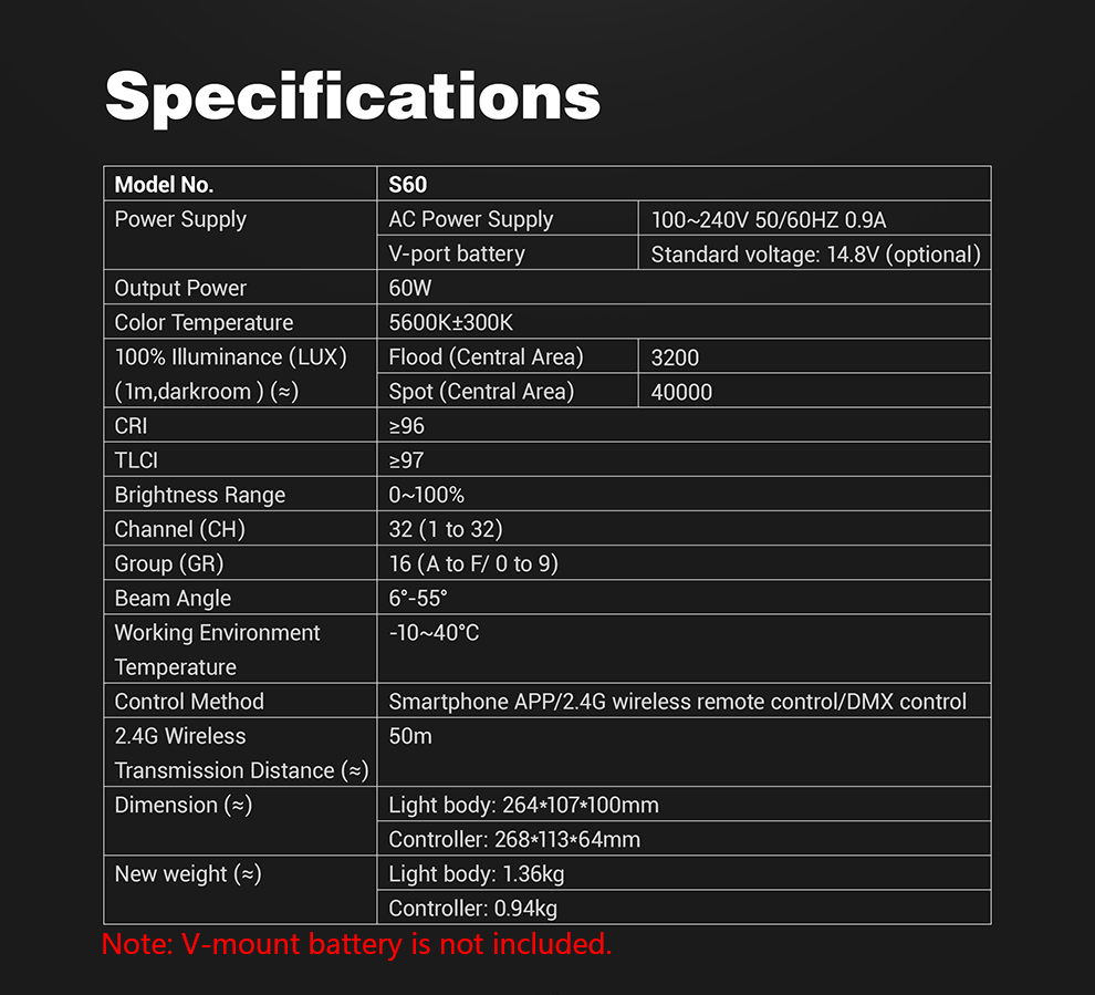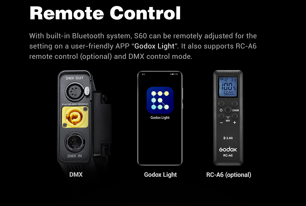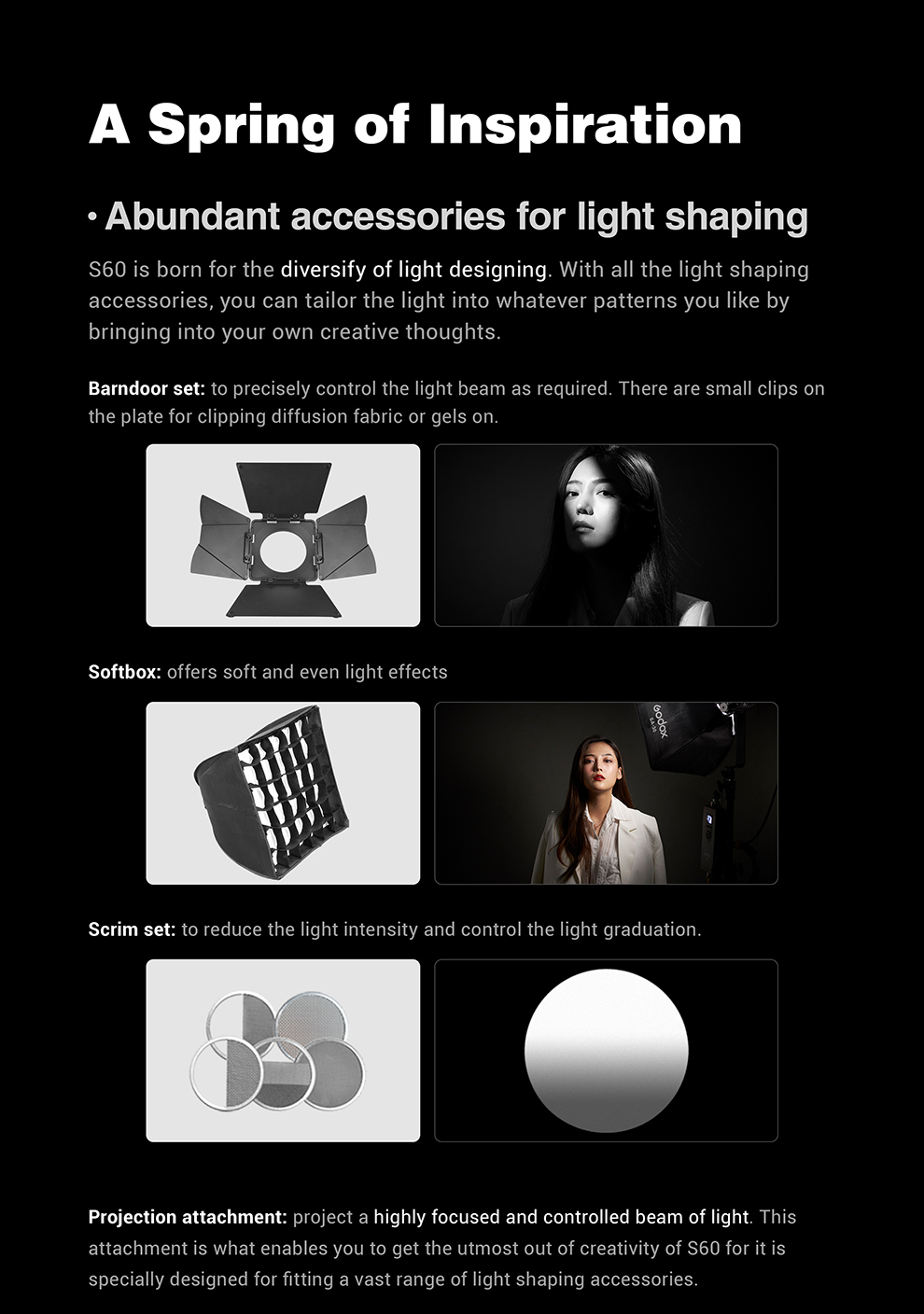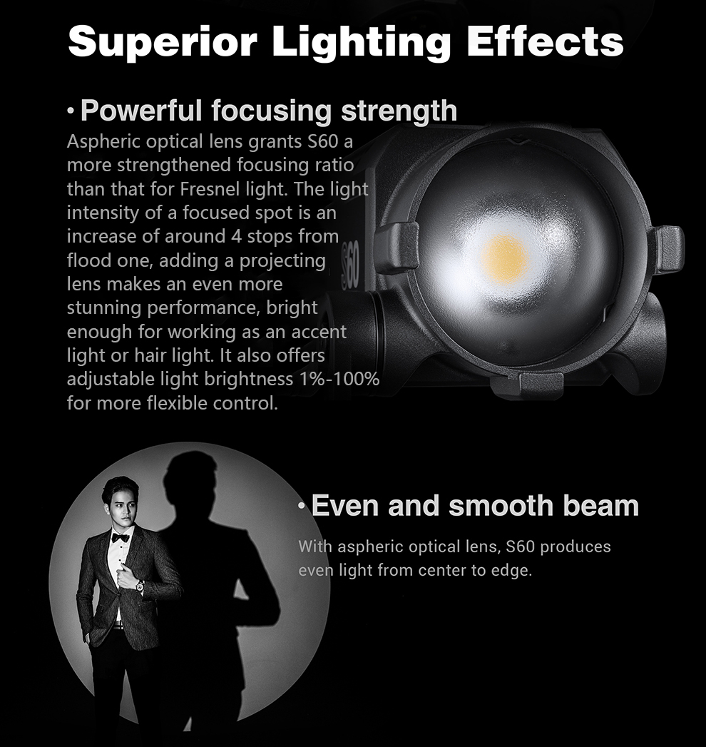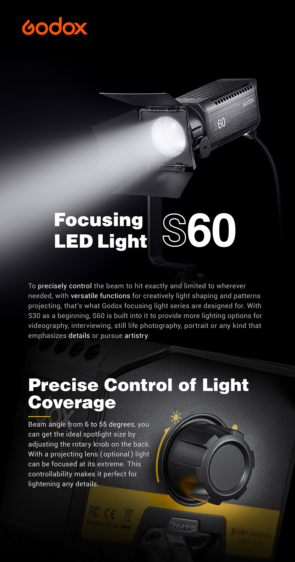 Godox S60 60W Focusing LED Light Photography Continuous Lighting Adjustable Spotlight With Barn Door