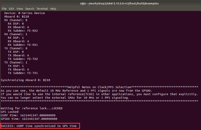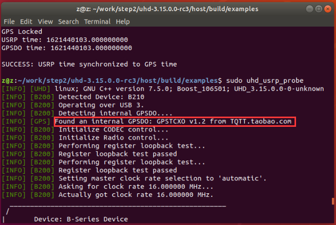 Screenshot of Using Uhd_usrp_probe Command to Find the GPS Clock: