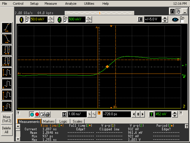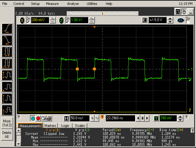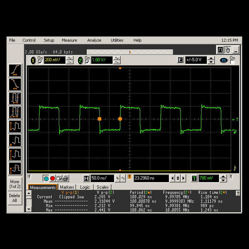 Output square wave, peak-to-peak value is about 1.2V when impedance is 50Ω, and the peak-to-peak value is about 2.5V when the output is 1MΩ.
