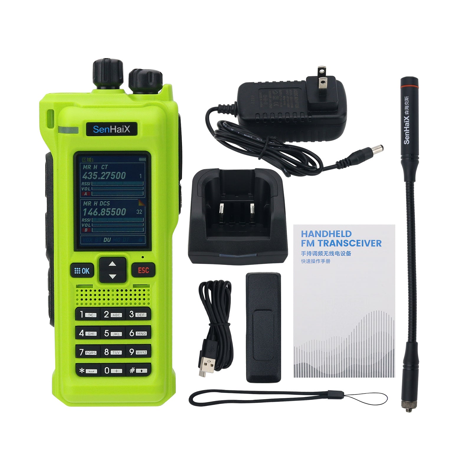 Grass Green GT-12 10W Multi-band Handheld Walkie Talkie 2-Inch LED Color Screen Built-in Bluetooth Support FM/AM/UHF/VHF