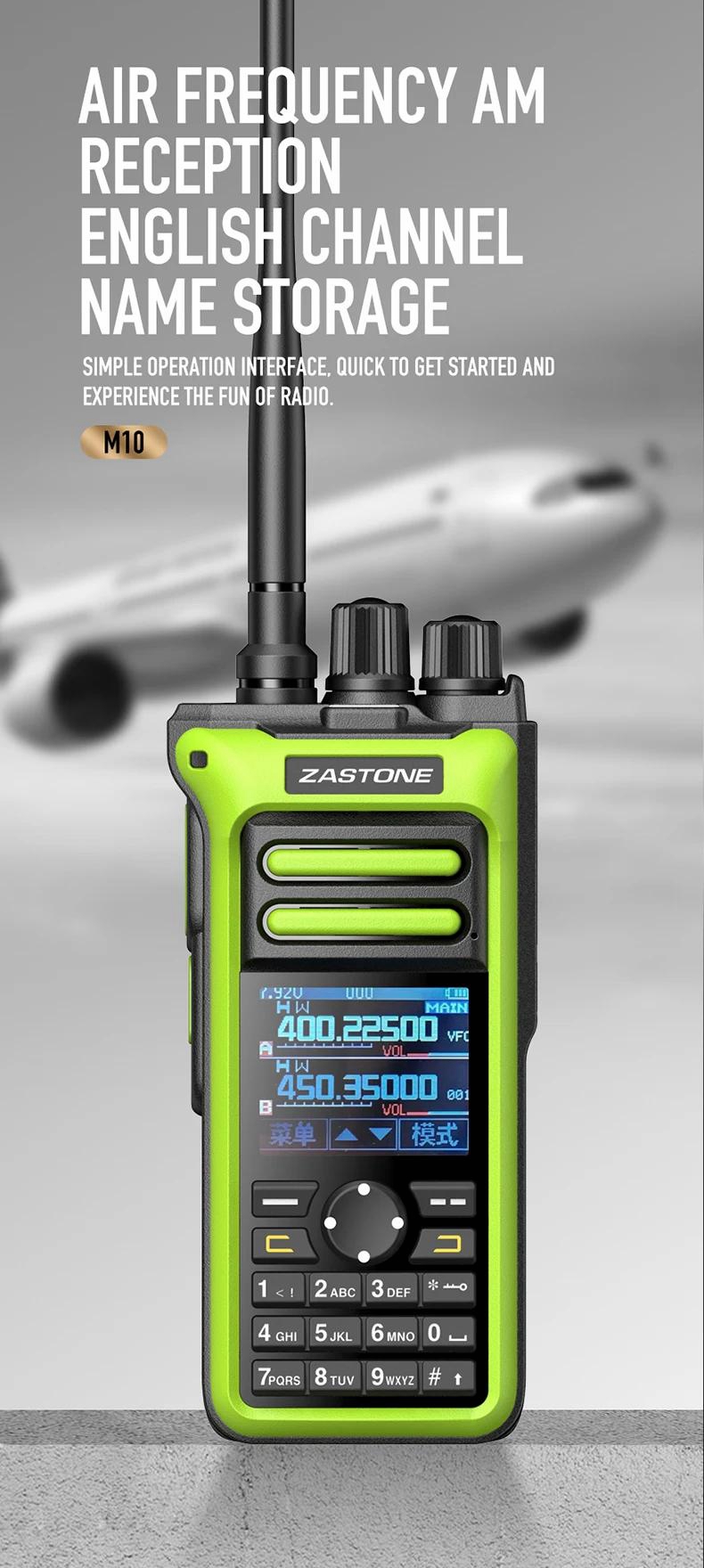 Green M10 Multi-band 10W High Power Handheld Walkie Talkie FM AM Receiving Support PTT ID Identification with 1.77-inch LCD